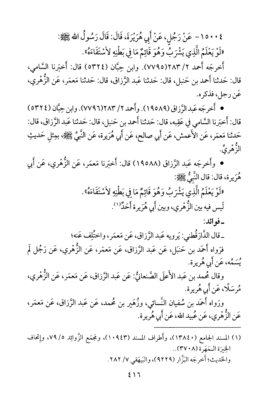 ١٥٠٠٤ - عن رجل، عن أبي هريرة، قال: قال رسول الله صَلى الله عَليه وسَلم: