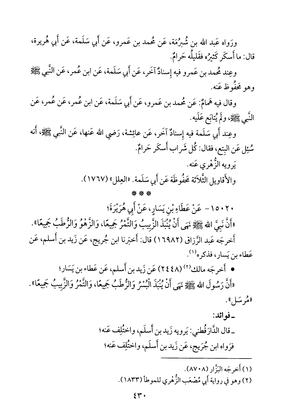 - قال الدارقُطني: يرويه زيد بن أسلم، واختُلِف عنه؛