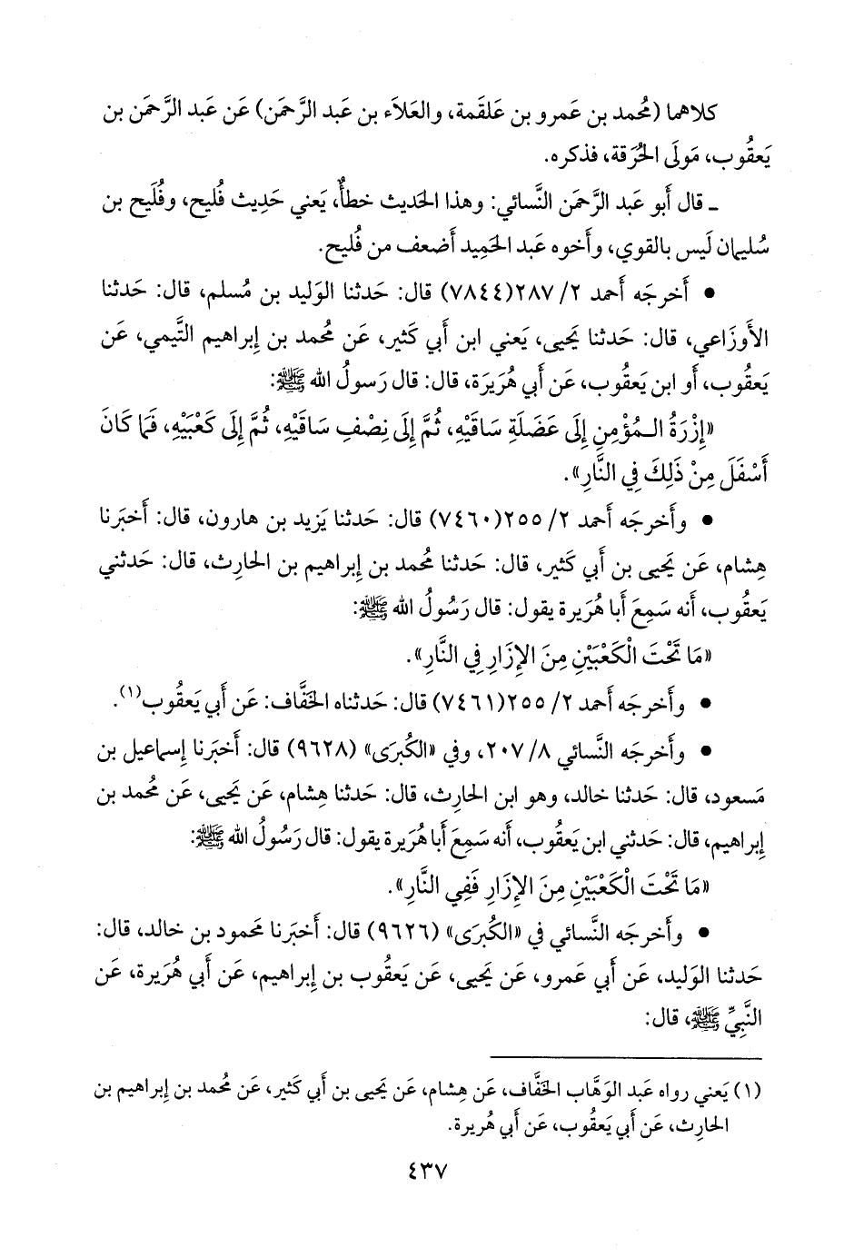 (¬١) يعني رواه عبد الوَهَّاب الخفاف، عن هشام، عن يحيى بن أبي كثير، عن محمد بن إبراهيم بن الحارث، عن أبي يعقوب، عن أبي هريرة.