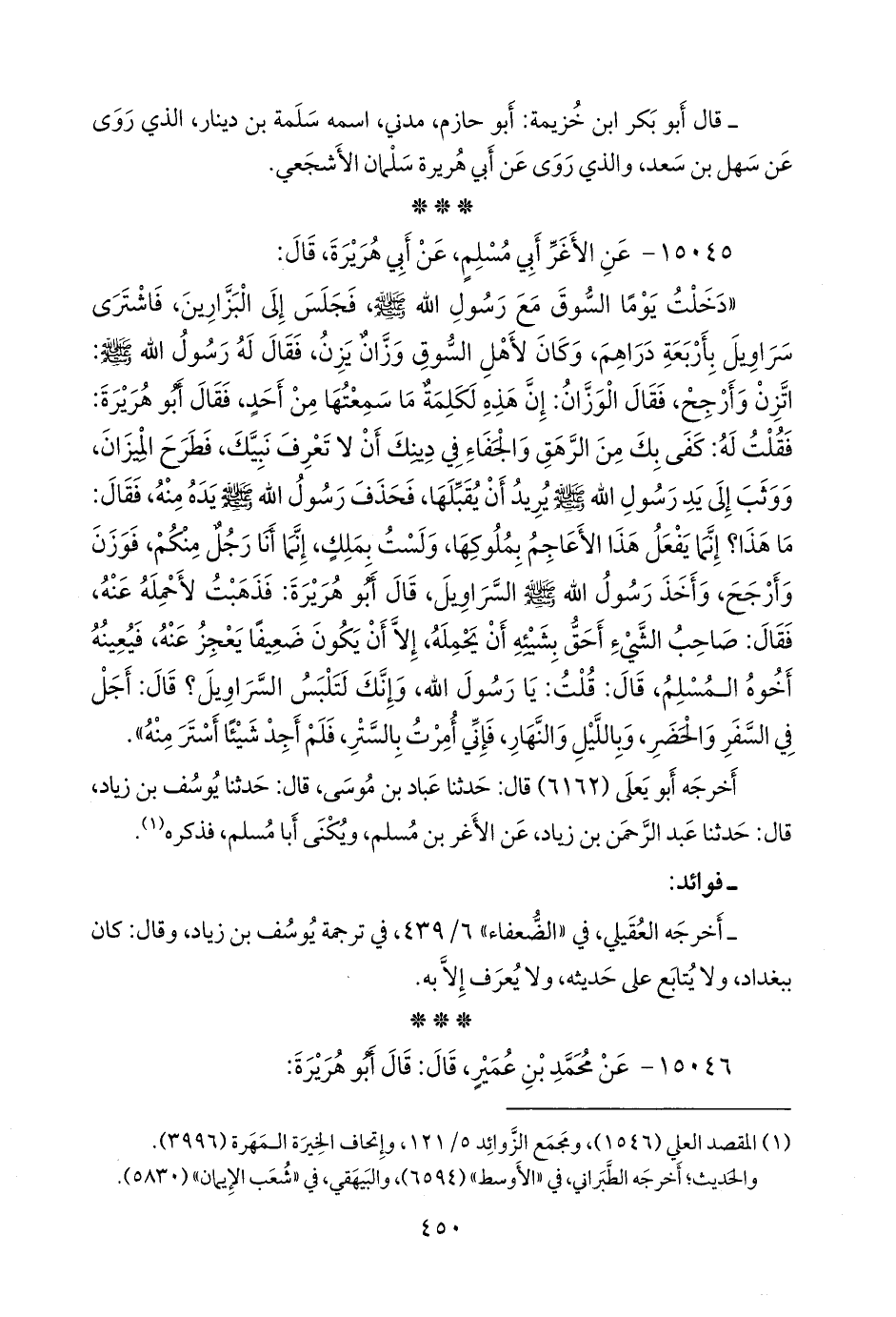 ١٥٠٤٥ - عن الأغر أبي مسلم، عن أبي هريرة، قال: