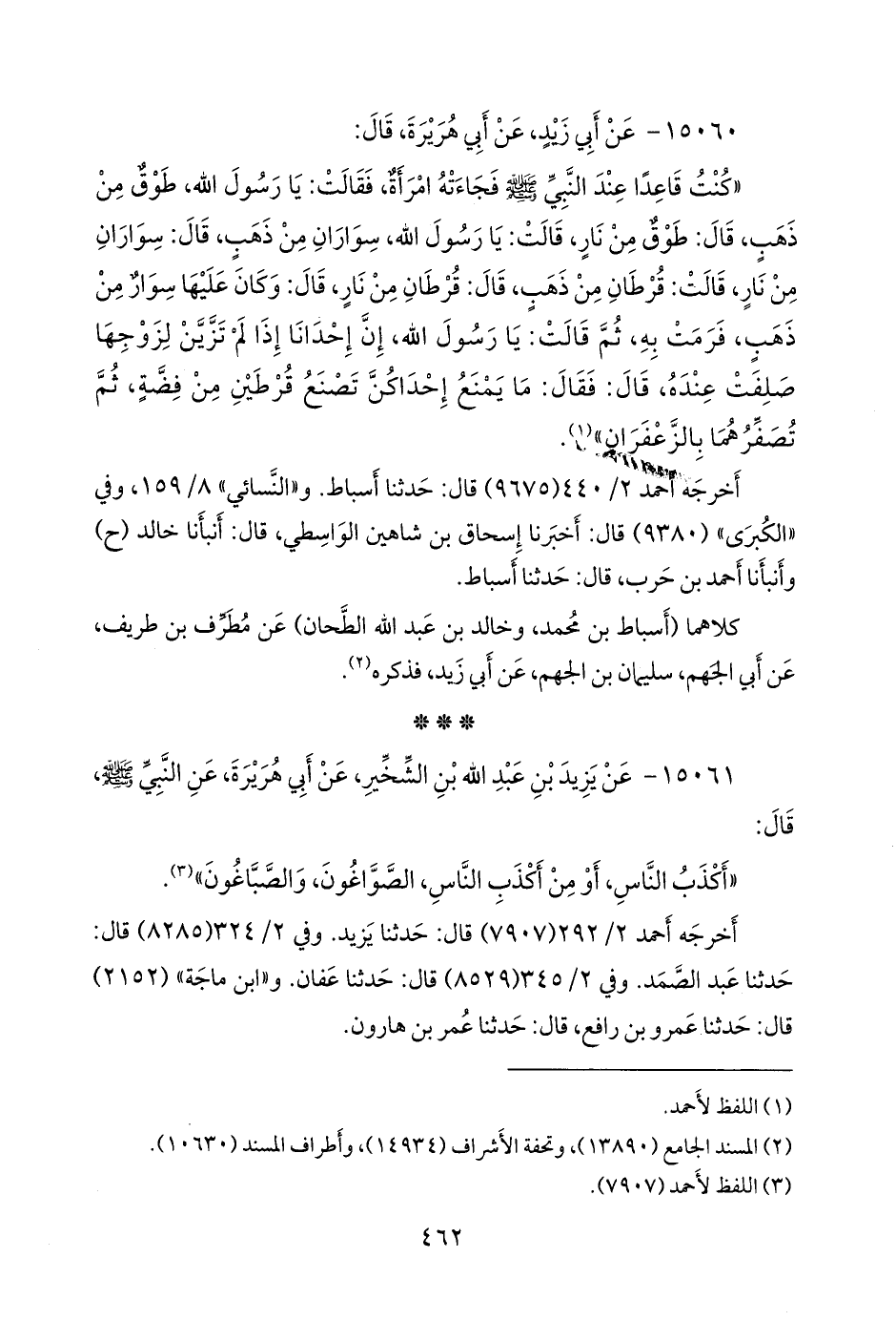 (¬٢) المسند الجامع (١٣٨٩٠)، وتحفة الأشراف (١٤٩٣٤)، وأطراف المسند (١٠٦٣٠).