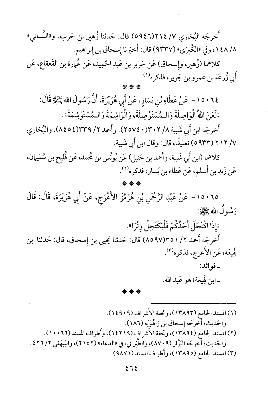 (¬١) المسند الجامع (١٣٨٩٤)، وتحفة الأشراف (١٤٢١٩)، وأطراف المسند (١٠٠٦٦).