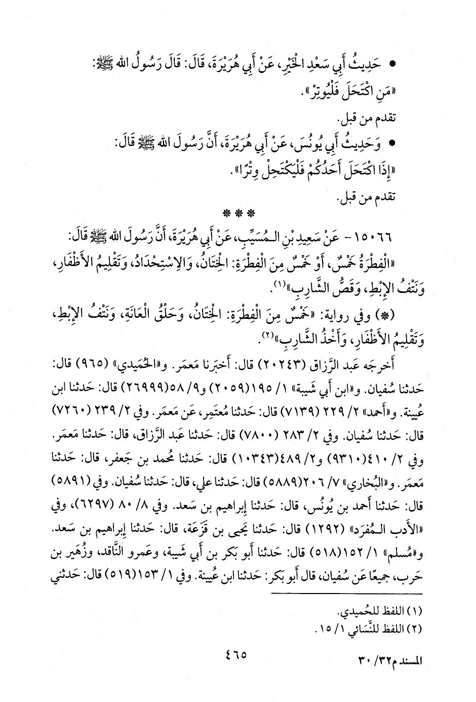١٥٠٦٦ - عن سعيد بن المُسَيب، عن أبي هريرة، أن رسول الله صَلى الله عَليه وسَلم قال: