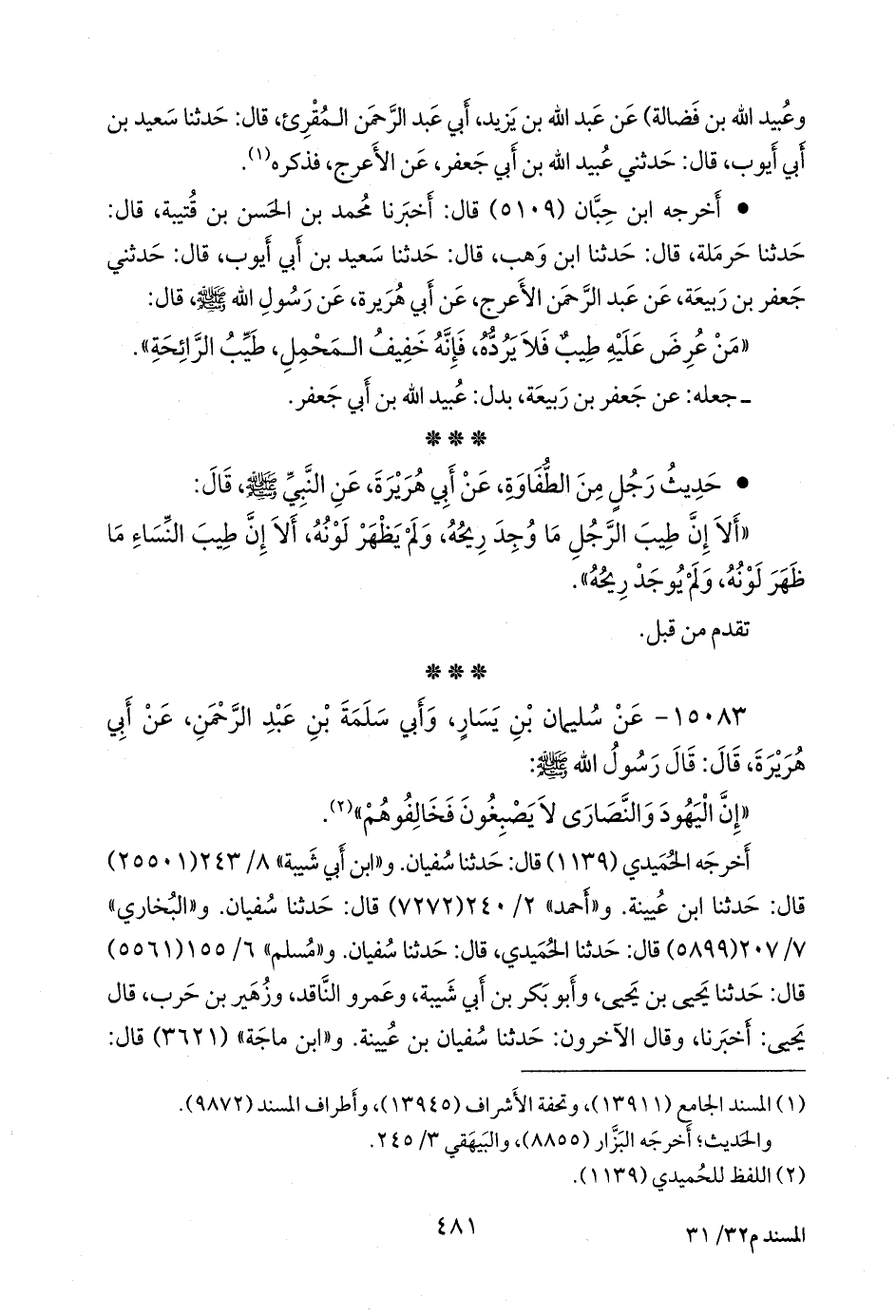 أخرجه الحُميدي (١١٣٩) قال: حدثنا سفيان. و «ابن أبي شيبة» (٢٥٥٠١) قال: حدثنا ابن عُيينة. و «أحمد» ٢/ ٢٤٠ (٧٢٧٢) قال: حدثنا سفيان. و «البخاري» ٧/ ٢٠٧ (٥٨٩٩) قال: حدثنا الحميدي، قال: حدثنا سفيان. و «مسلم» ٦/ ١٥٥ (٥٥٦١) قال: حدثنا يحيى بن يحيى، وأَبو بكر بن أبي شيبة، وعَمرو الناقد، وزهير بن حرب، قال يحيى: أخبرنا، وقال الآخرون: حدثنا سفيان بن عُيينة. و «ابن ماجة» (٣٦٢١) قال: