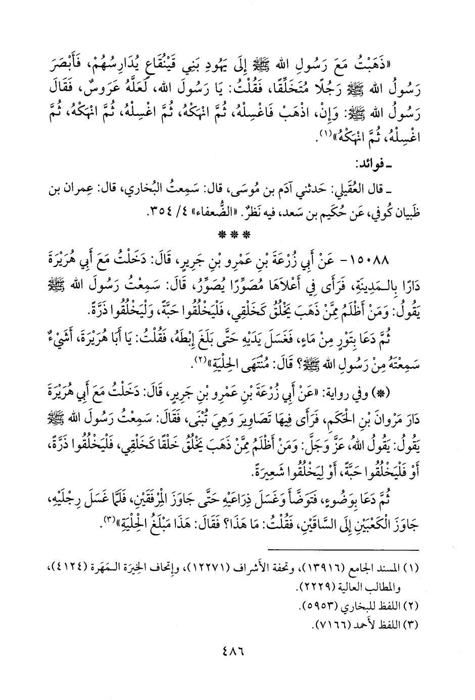 ١٥٠٨٨ - عن أَبي زُرعَة بن عَمرو بن جرير، قال: دخلت مع أبي هريرة دارا بالمدينة، فرأى أعلاها مصورا يصور، قال: سمعت رسول الله صَلى الله عَليه وسَلم يقول: ومن أظلم ممن ذهب يخلق كخلقي، فليخلقوا حبة، وليخلقوا ذرة.