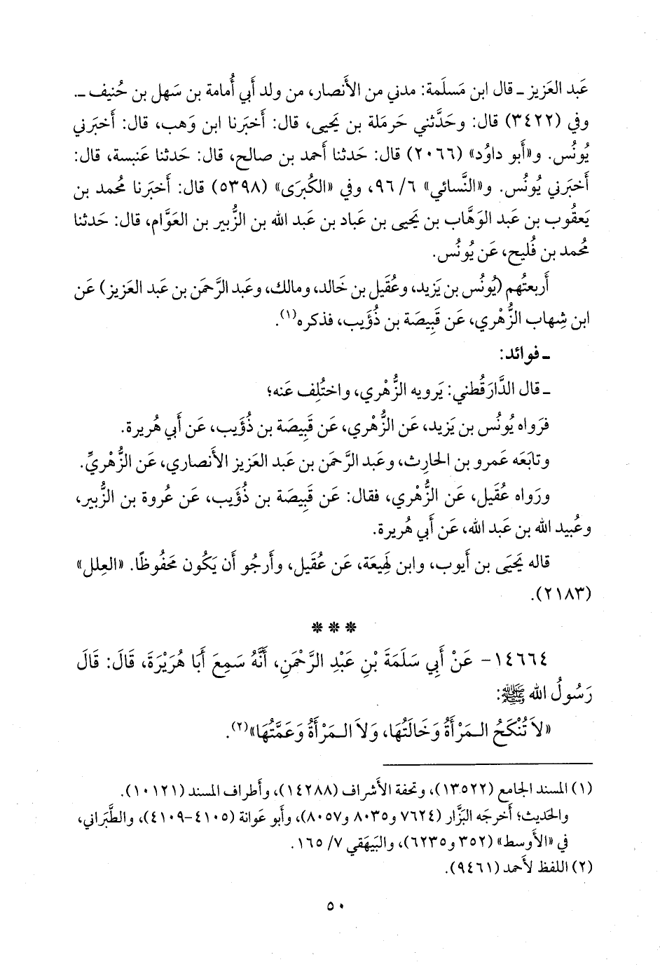- وفي رواية: «نهى رسول الله صَلى الله عَليه وسَلم أن يجمع بين المرأة وعمتها، وبين المرأة وخالتها» (¬٣).