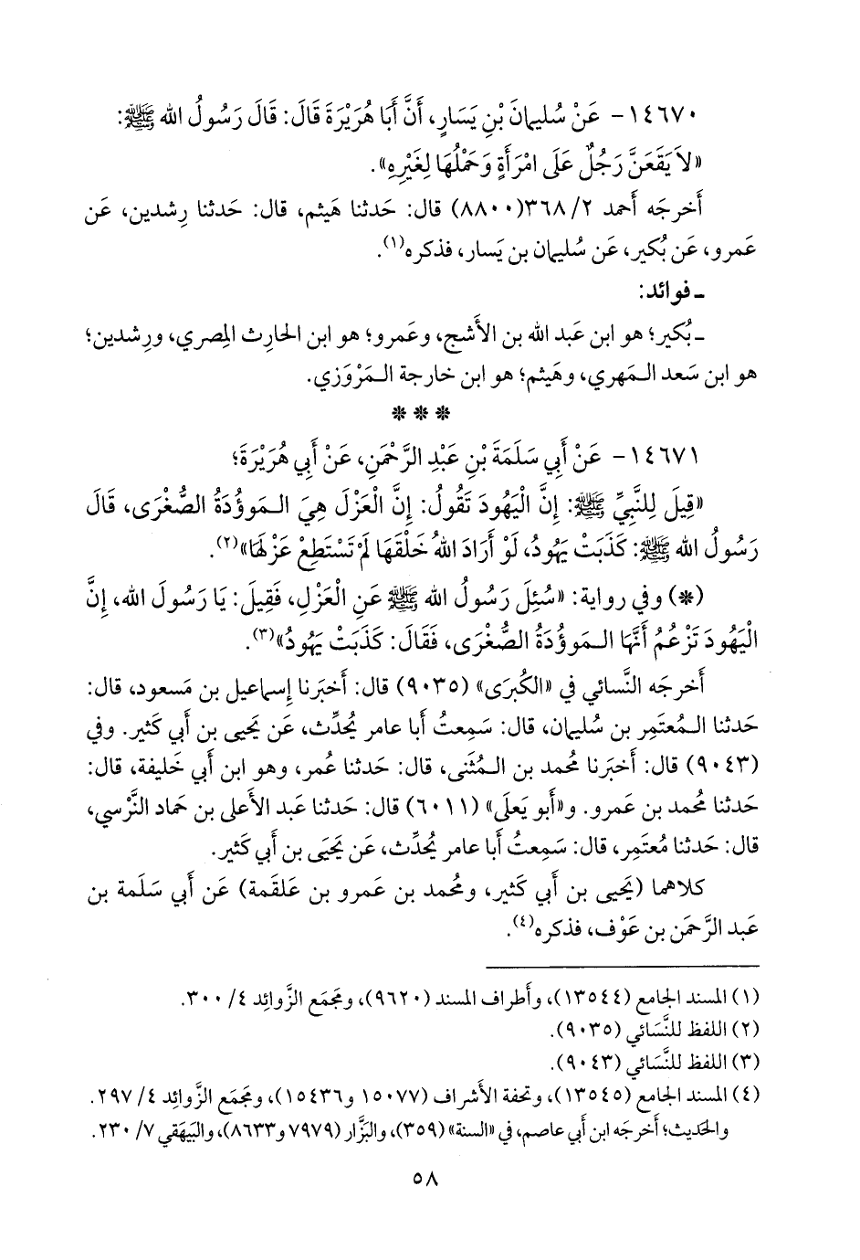 (¬٣) المسند الجامع (١٣٥٤٥)، وتحفة الأشراف (١٥٠٧٧ و ١٥٤٣٦)، ومَجمَع الزوائد ٤/ ٢٩٧.
