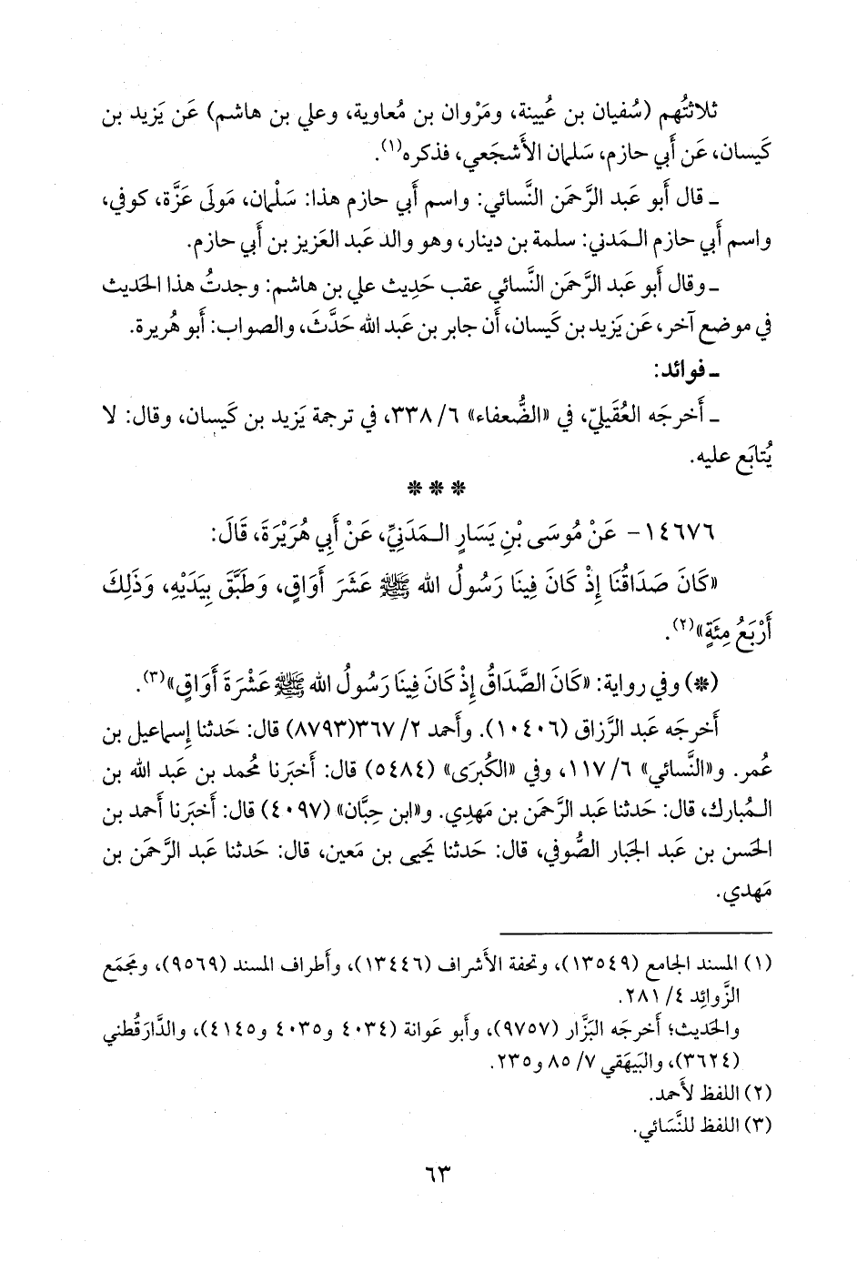 (¬٣) المسند الجامع (١٣٥٥٠)، وتحفة الأشراف (١٤٦٣٠)، وأطراف المسند (١٠٣٢٣).