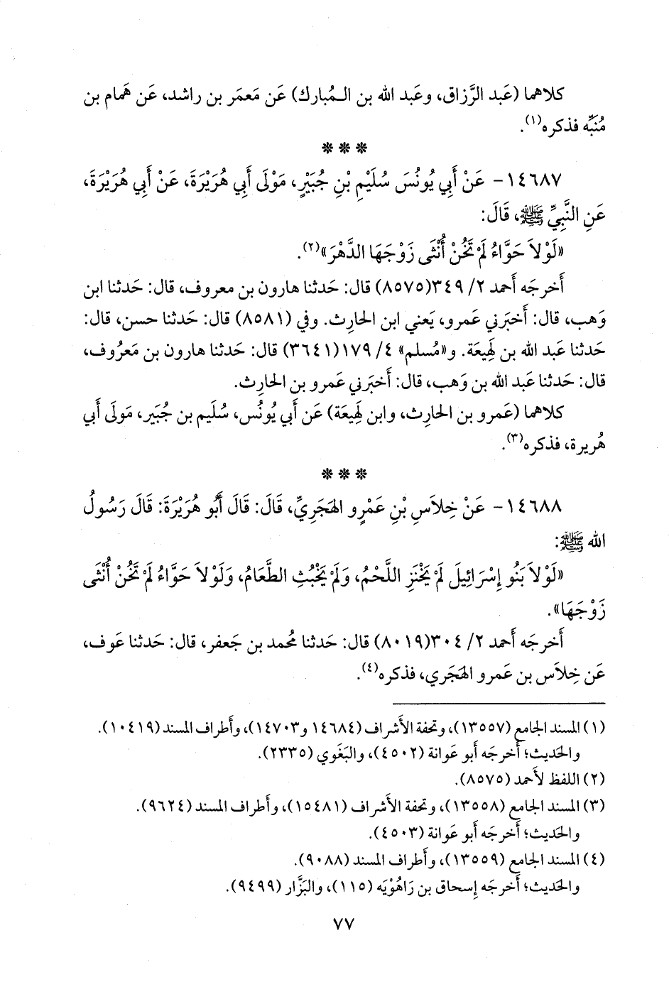 (¬٢) المسند الجامع (١٣٥٥٨)، وتحفة الأشراف (١٥٤٨١)، وأطراف المسند (٩٦٢٤).