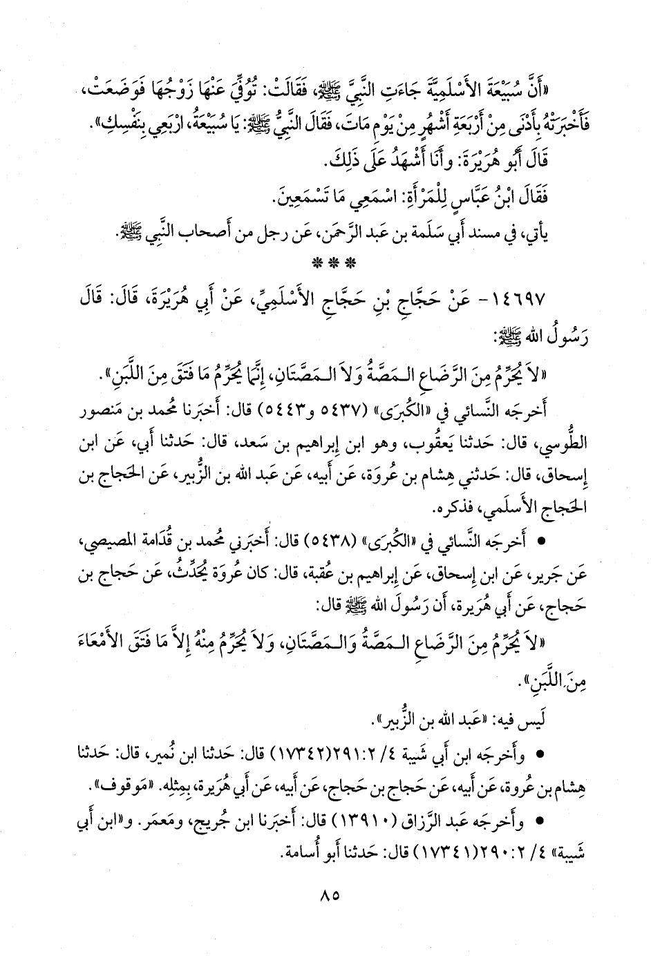 • أَخرجه النَّسَائي في «الكبرى» (٥٤٣٨) قال: أخبرني محمد بن قُدَامة المصيصي، عن جرير، عن ابن إسحاق، عن إبراهيم بن عُقبة، قال: كان عروة يحدث، عن حجاج بن حجاج، عن أبي هريرة، أن رسول الله صَلى الله عَليه وسَلم قال: