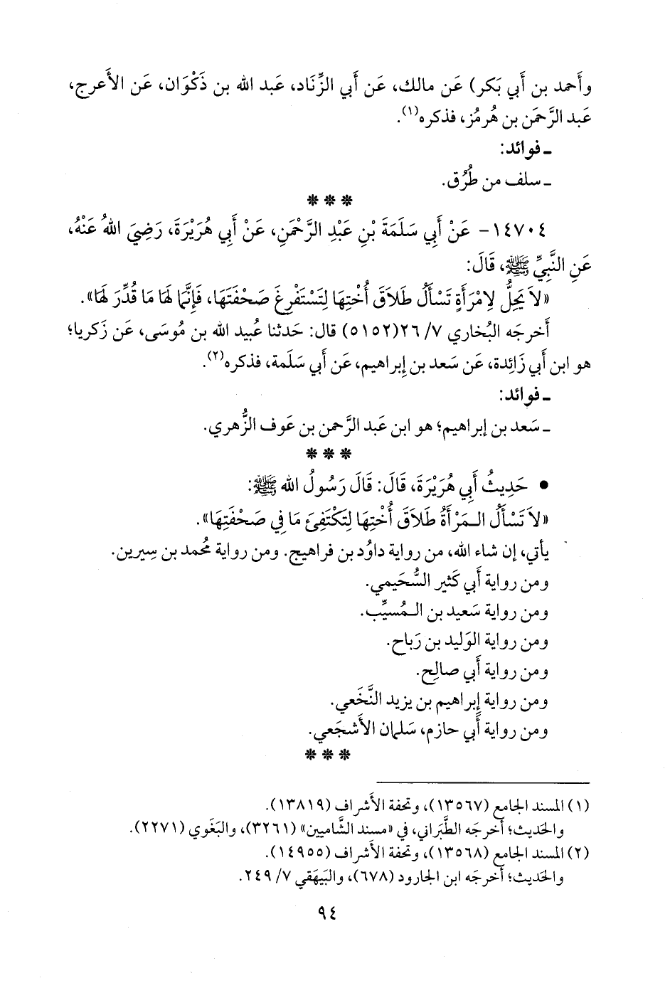١٤٧٠٤ - عن أبي سلمة بن عبد الرَّحمَن، عن أبي هريرة، رضي الله عنه، عن النبي صَلى الله عَليه وسَلم قال: