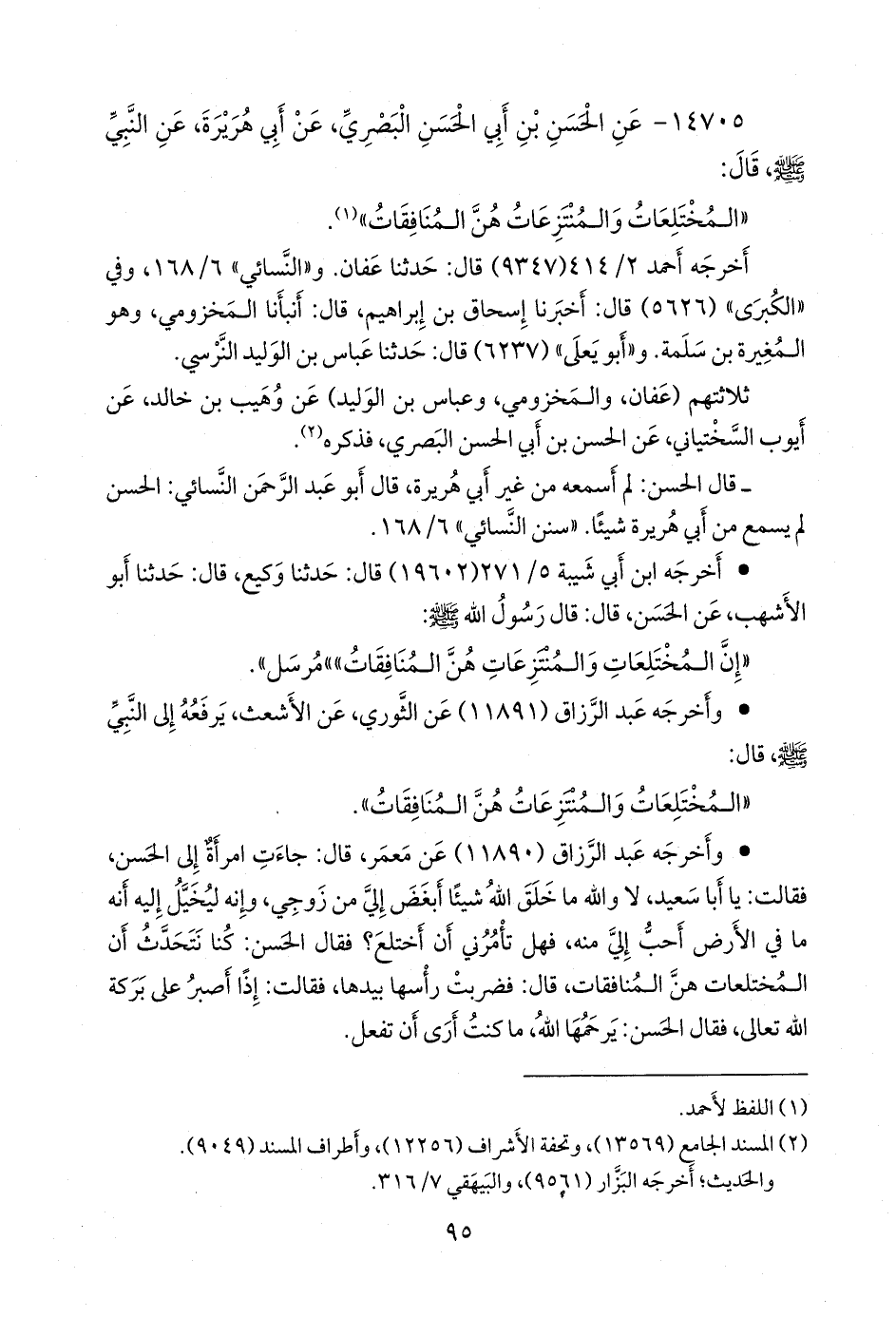 «إن المختلعات والمنتزعات هن المنافقات»» مرسل».