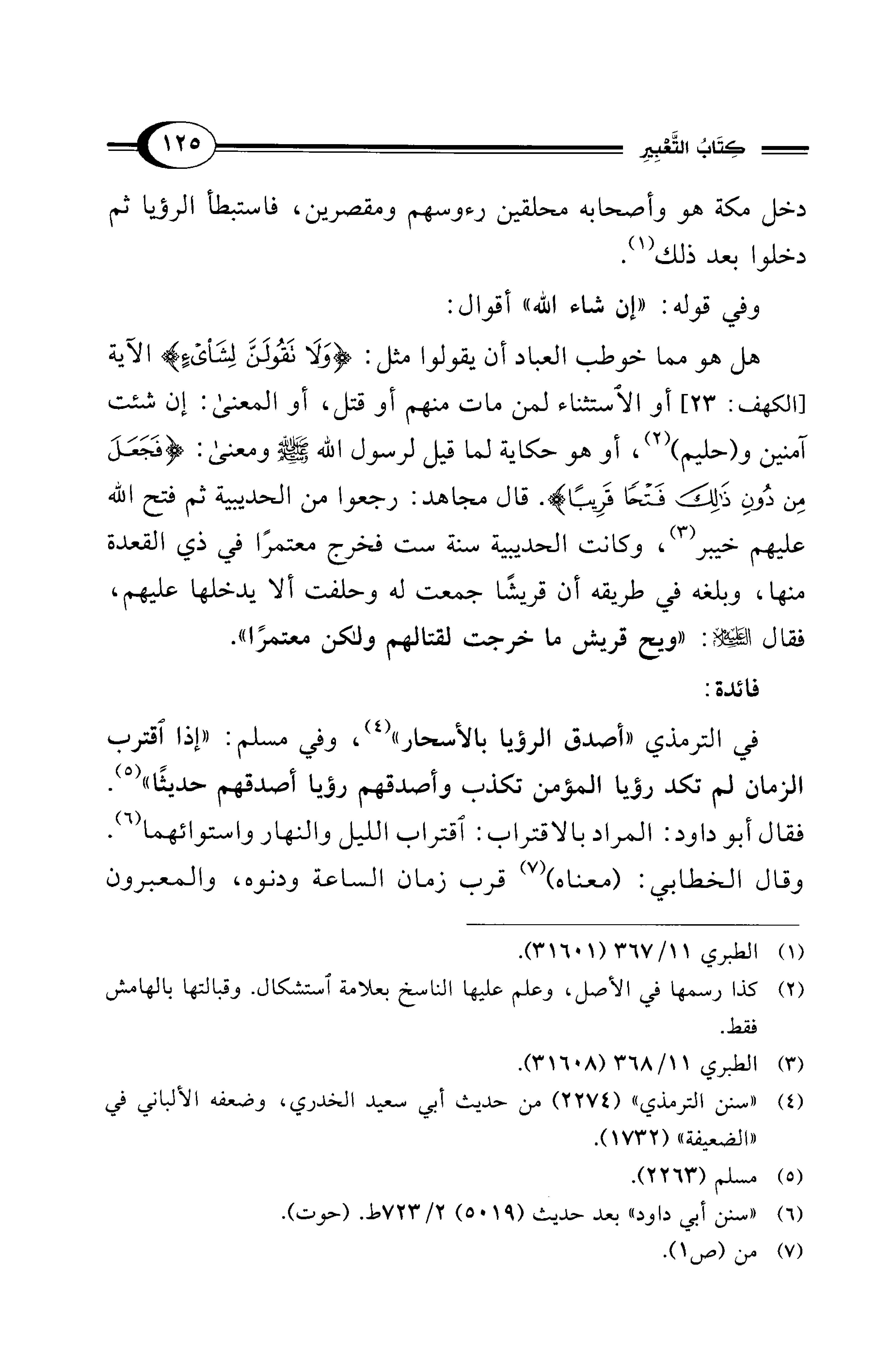 في الترمذي"أصدق الرؤيا بالأسحار" (¬4)، وفي مسلم: "إذا اقترب الزمان لم تكد رؤيا المؤمن تكذب وأصدقهم رؤيا أصدقهم حديثًا" (¬5). فقال أبو داود: المراد بالاقتراب: اقتراب الليل والنهار واستوائهما (¬6). وقال الخطابي: (معناه) (¬7) قرب زمان الساعة ودنوه، والمعبرون