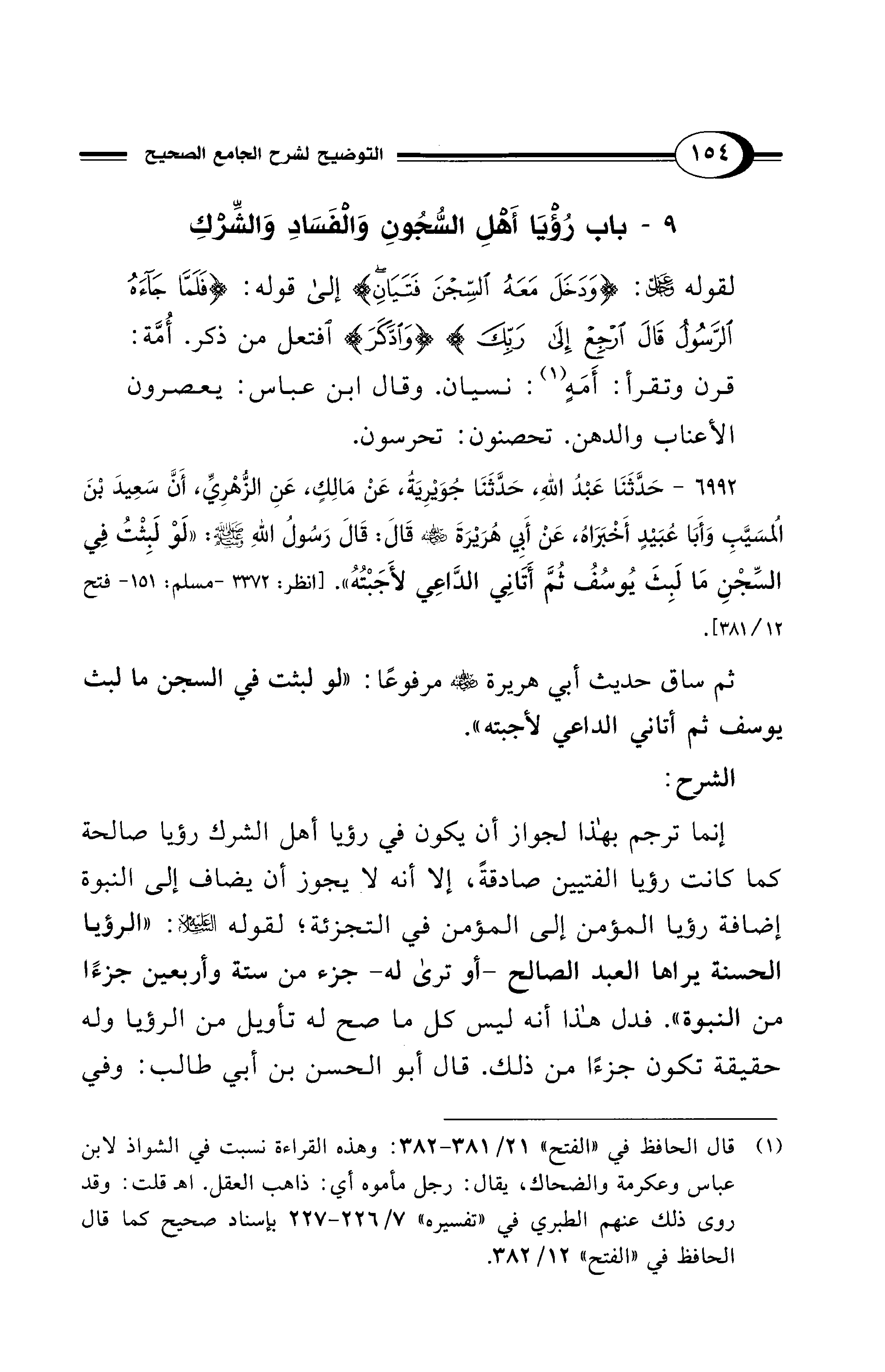 ثم ساق حديث أبي هريرة - رضي الله عنه - مرفوعًا: "لو لبثت في السجن ما لبث يوسف ثم أتاني الداعي لأجبته".