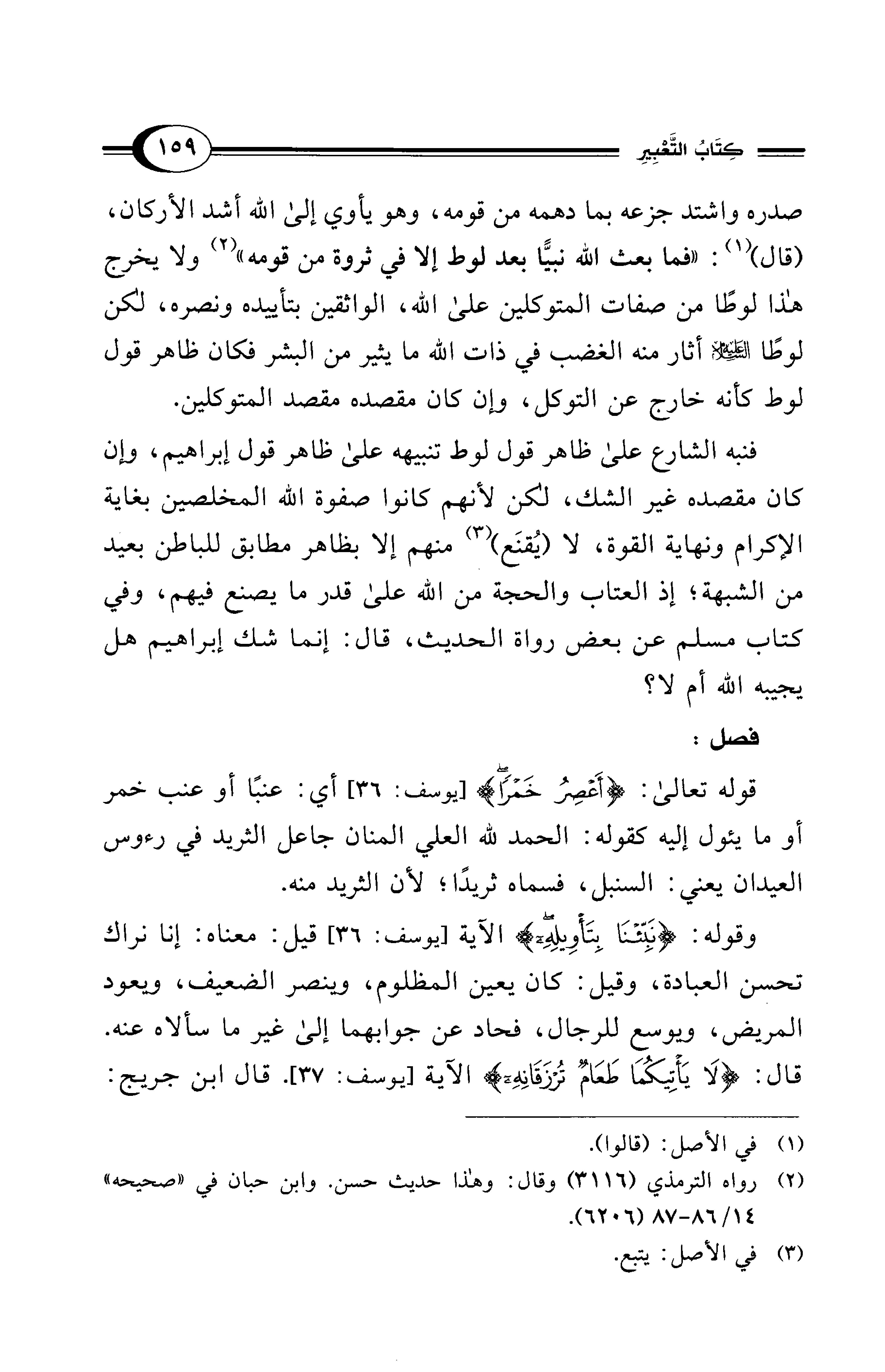 وقوله: {نَبِّئْنَا بِتَأْوِيلِهِ} الآية [يوسف: 36] قيل: معناه: إنا نراك تحسن العبادة، وقيل: كان يعين المظلوم، وينصر الضعيف، ويعود المريض، ويوسع للرجال، فحاد عن جوابهما إلى غير ما سألاه عنه. قال: {لَا يَأْتِيكُمَا طَعَامٌ تُرْزَقَانِهِ} الآية [يوسف: 37]. قال ابن جريج: