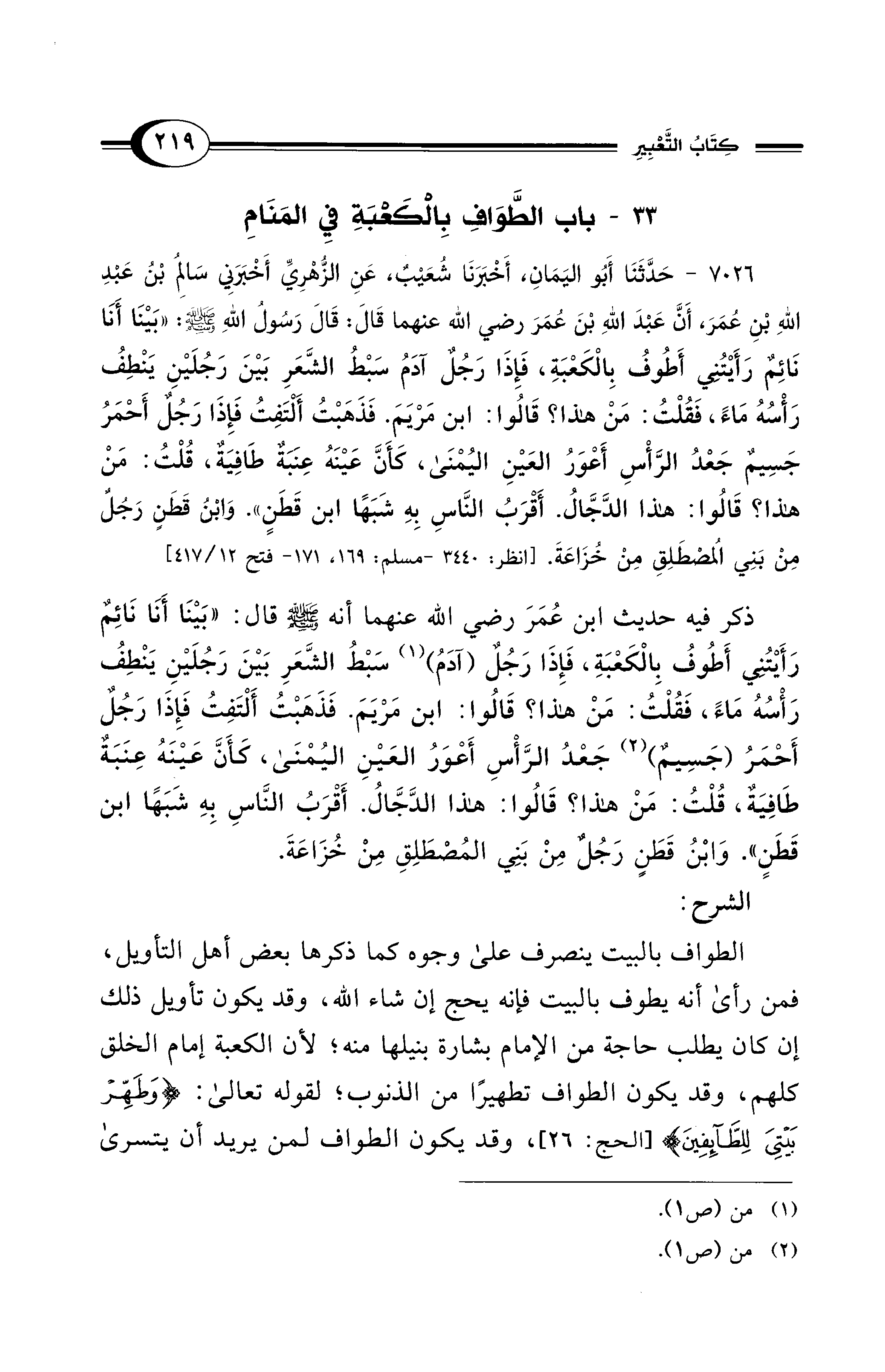 33 - باب الطَّوَافِ بِالْكَعْبَةِ فِي المَنَامِ