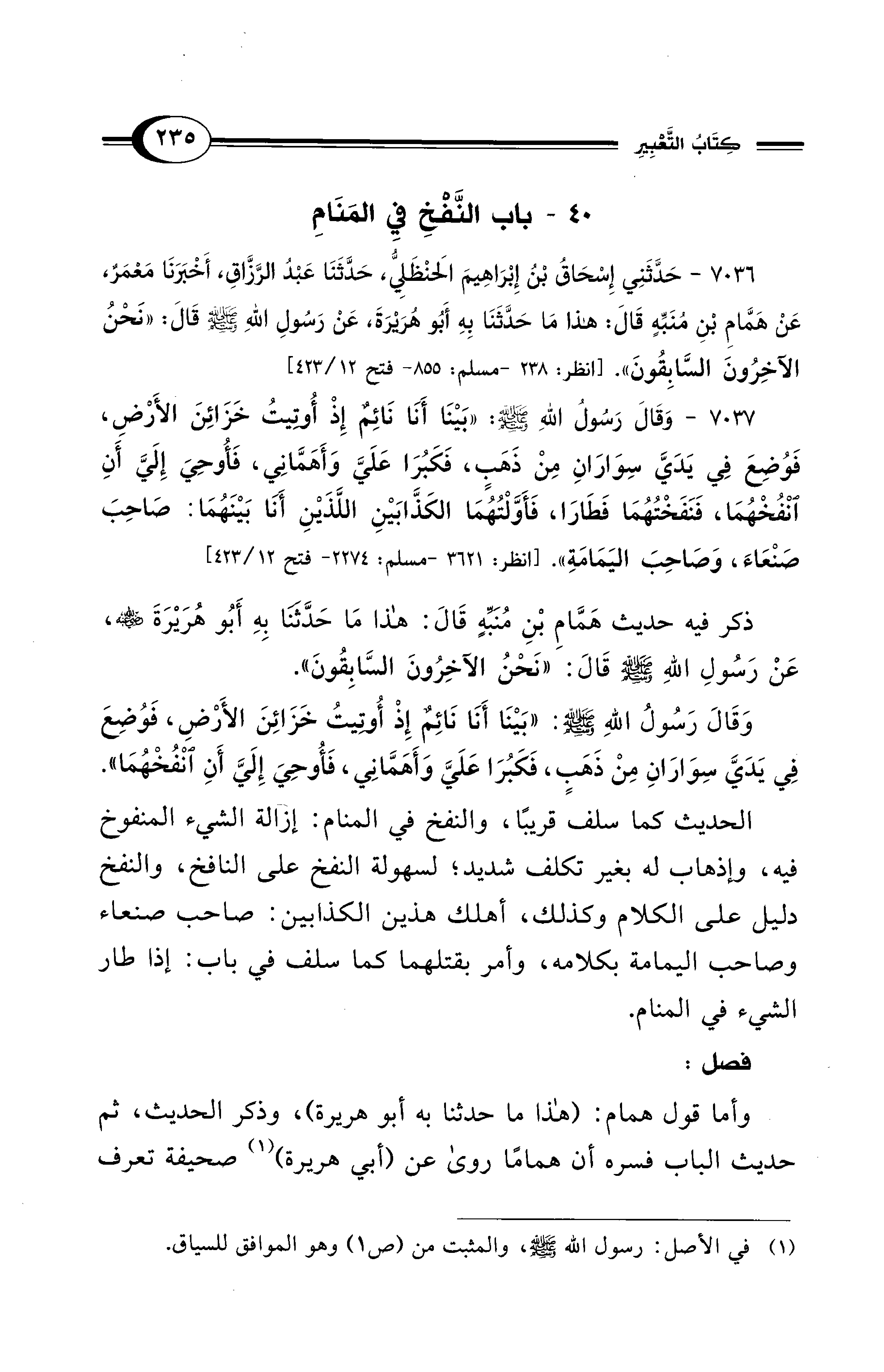 40 - باب النَّفْخِ فِي المَنَامِ
