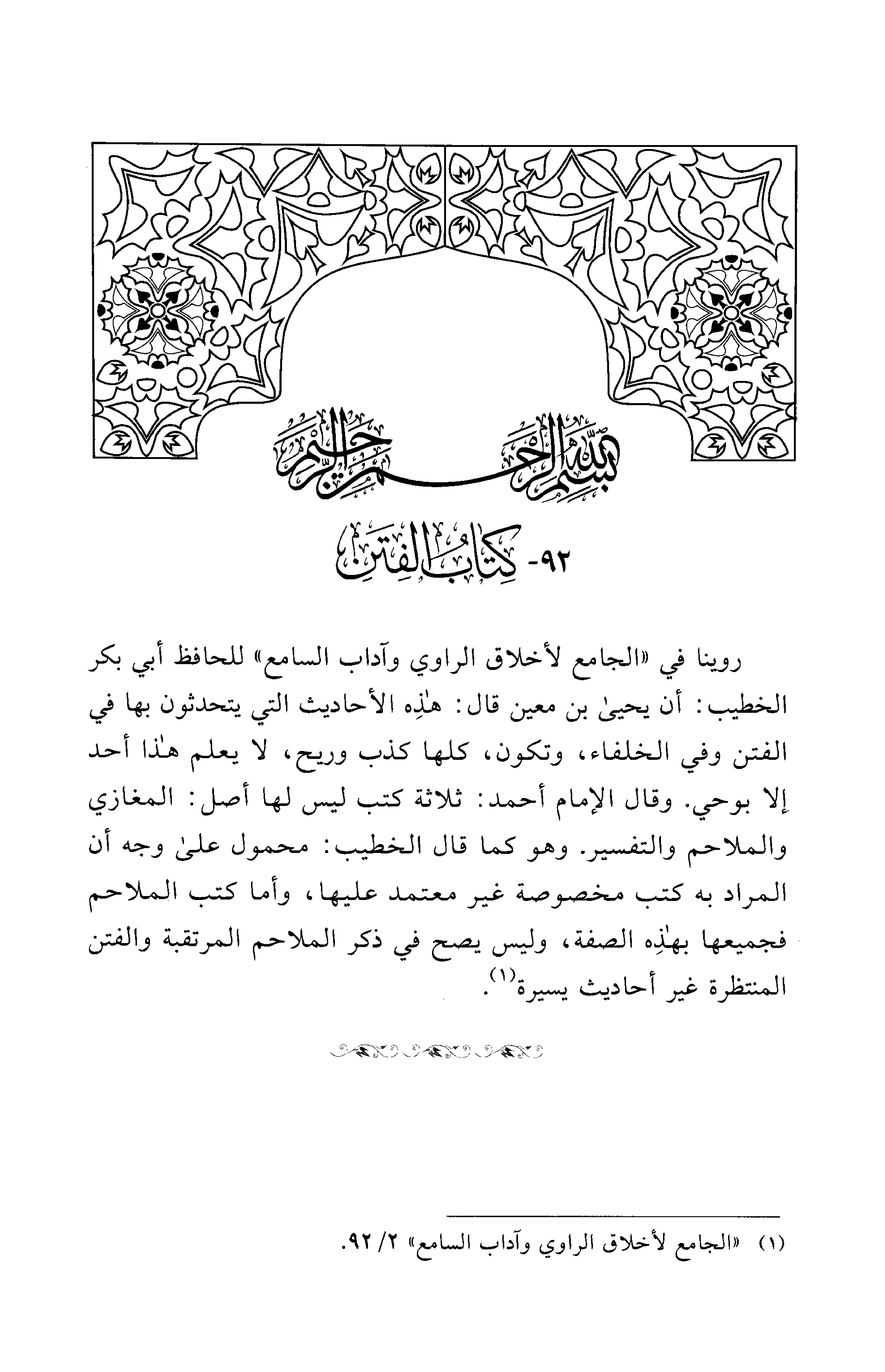 (¬1) "الجامع لأخلاق الراوي وآداب السامع" 2/ 92 .......