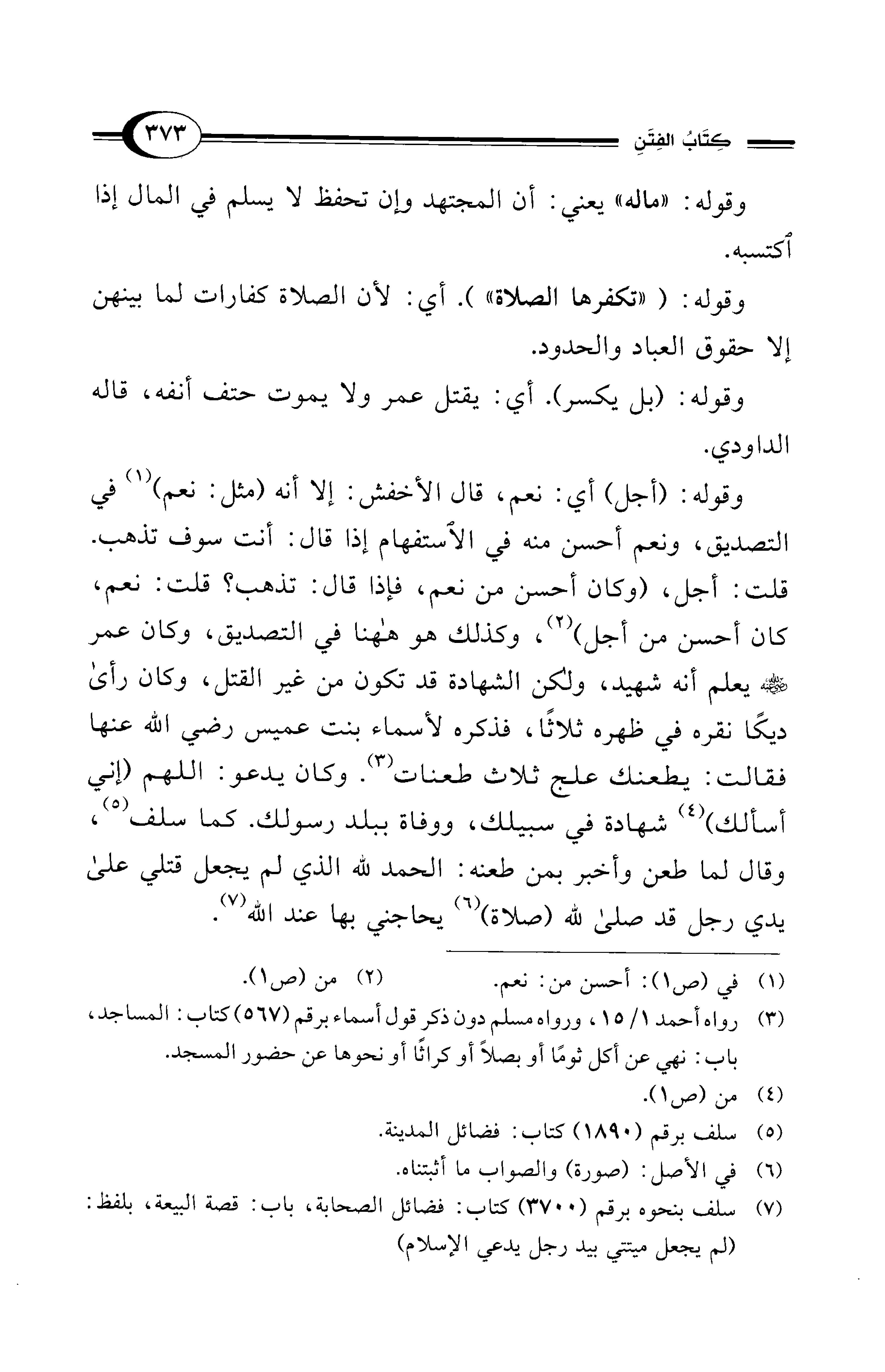 (¬7) سلف بنحوه برقم (3700) كتاب: فضائل الصحابة، باب: قصة البيعة، بلفظ: (لم يجعل ميتتي بيد رجل يدعي الإسلام)