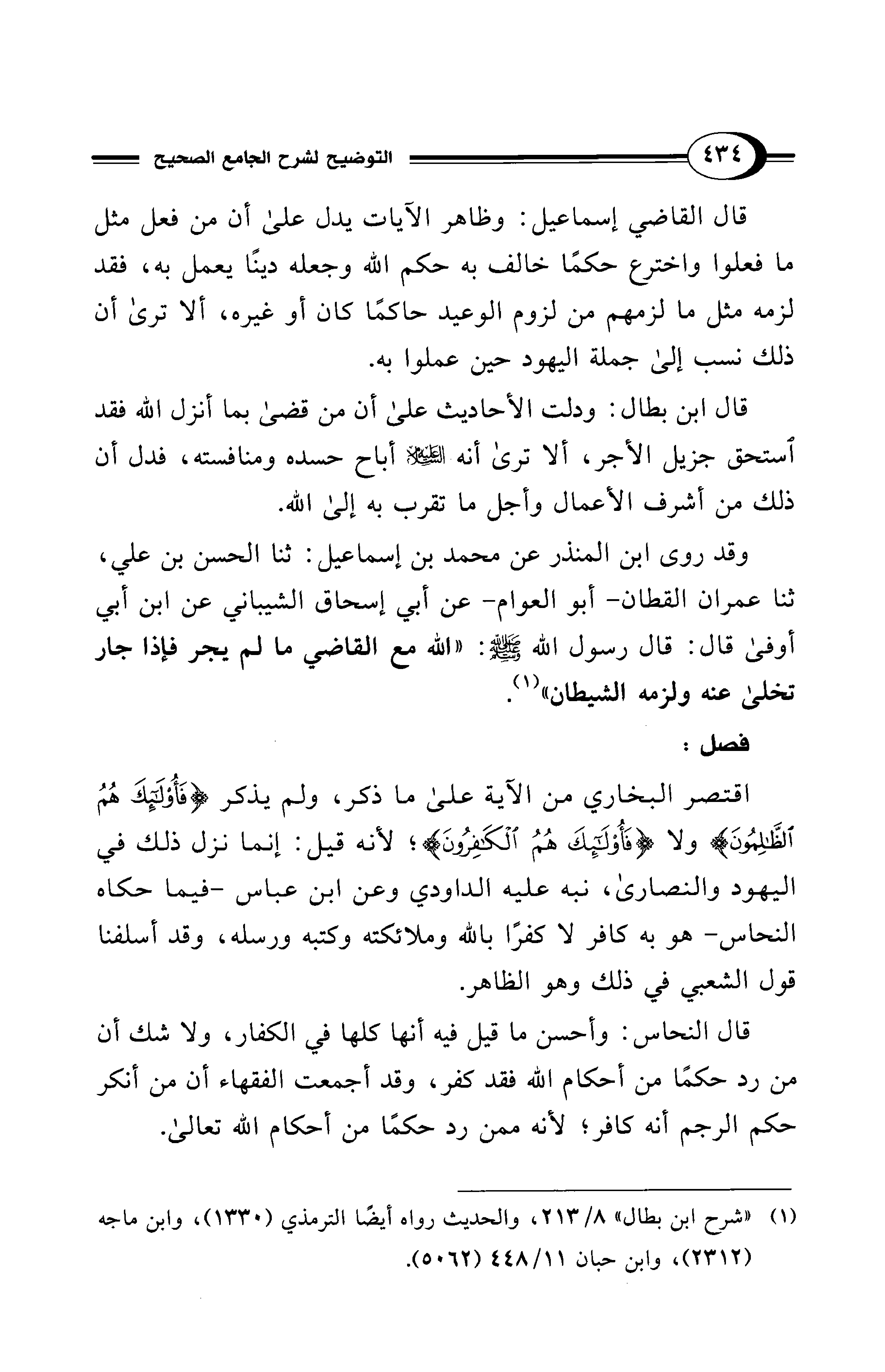 (¬1) "شرح ابن بطال" 8/ 213، والحديث رواه أيضًا الترمذي (1330)، وابن ماجه (2312)، وابن حبان 11/ 448 (5062).