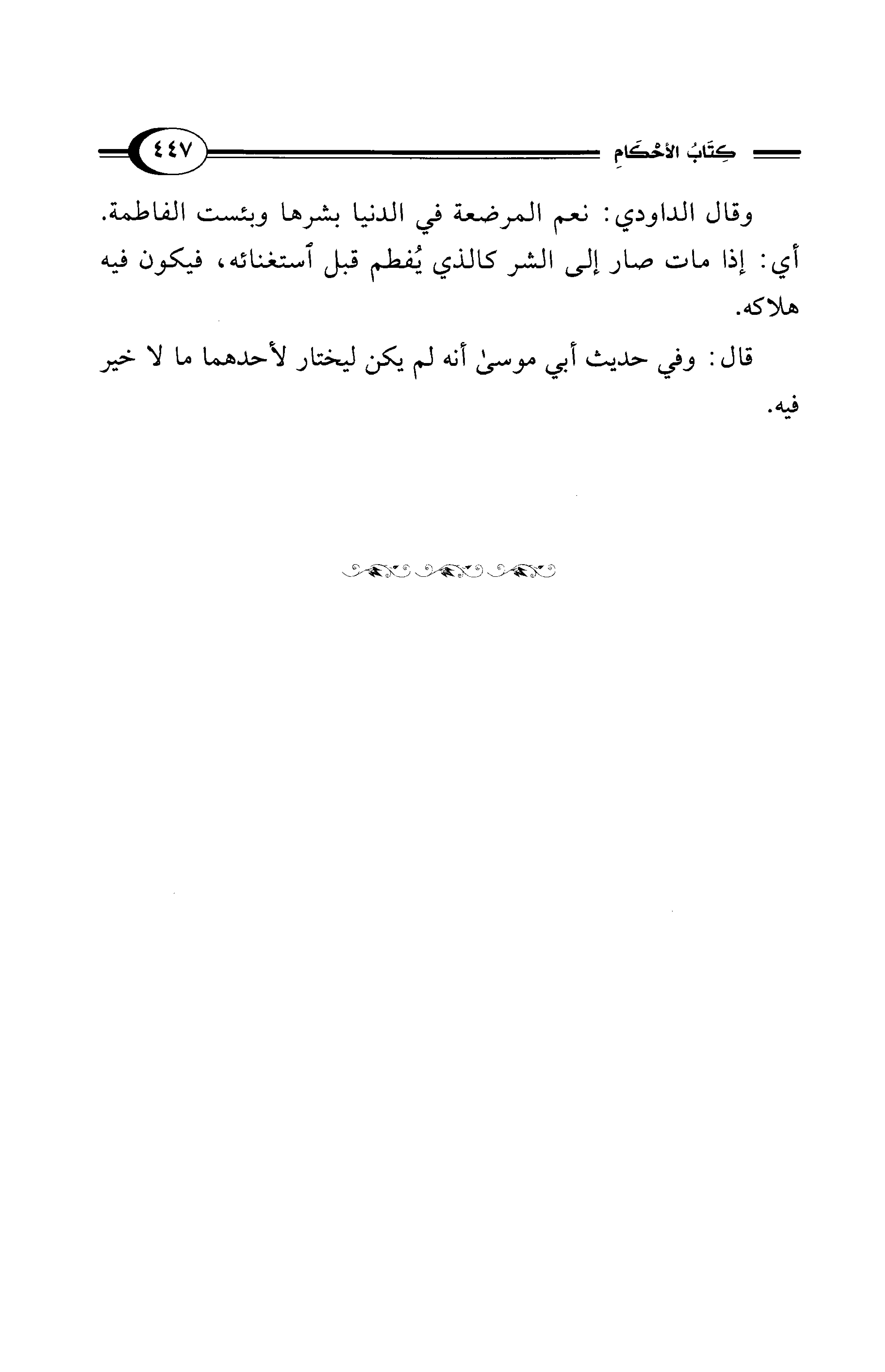 وقال الداودي: نعم المرضعة في الدنيا بشرها وبئست الفاطمة. أي: إذا مات صار إلى الشر كالذي يُفطم قبل استغنائه، فيكون فيه هلاكه.