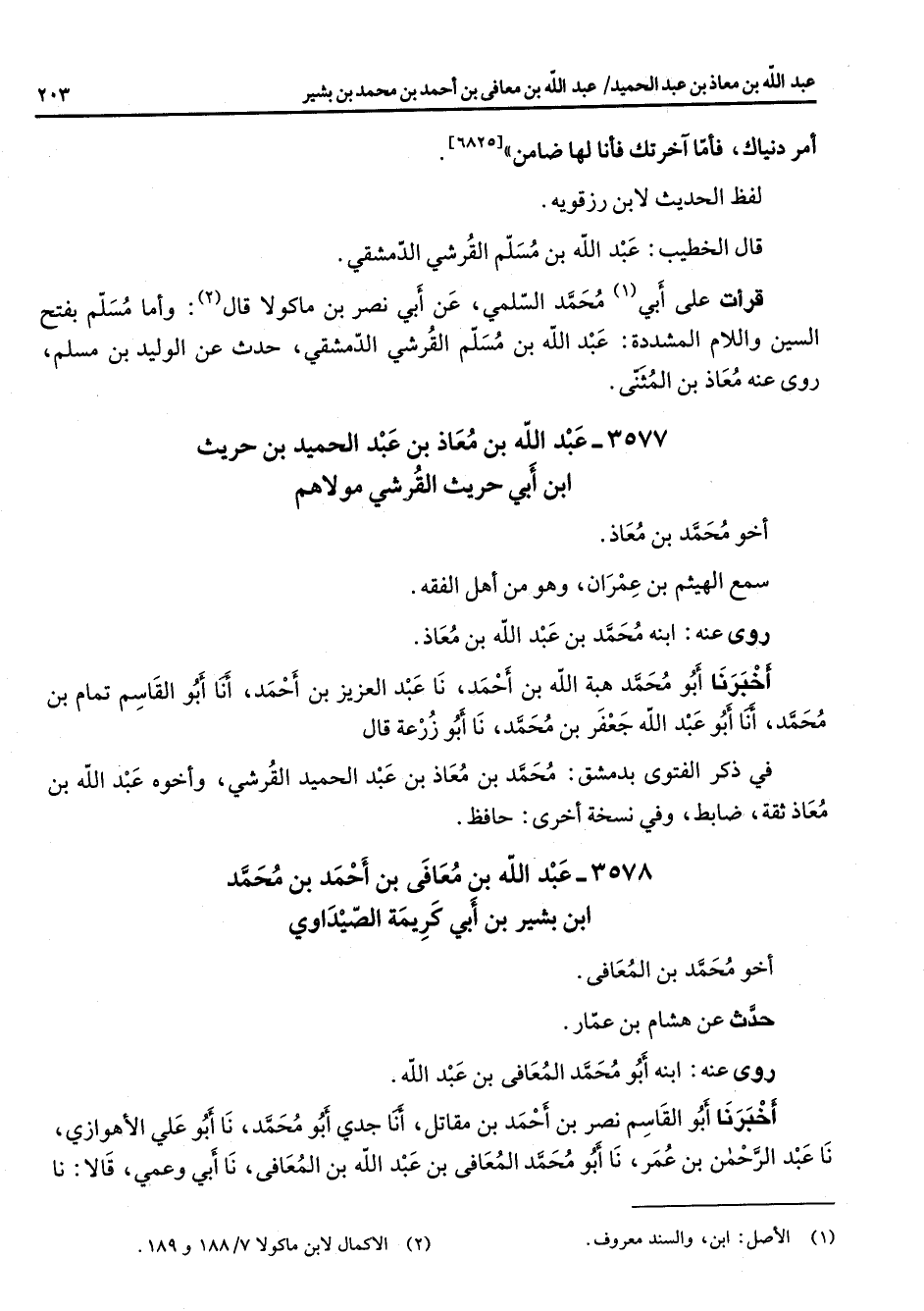 (2) الاكمال لابن ماكولا 7 / 188 و 189