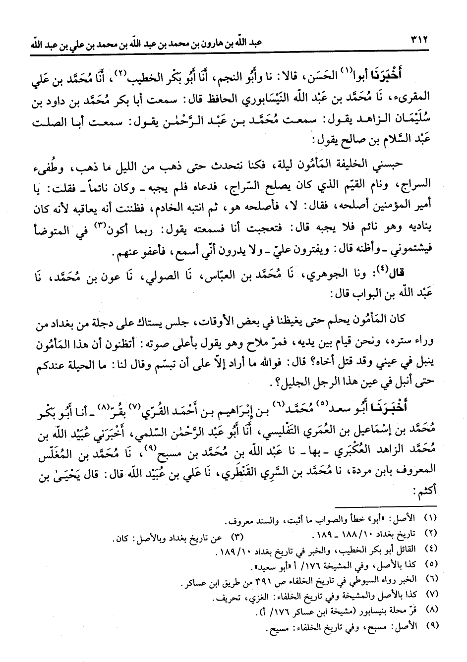 (4) القائل أبو بكر الخطيب والخبر في تاريخ بغداد 10 / 189