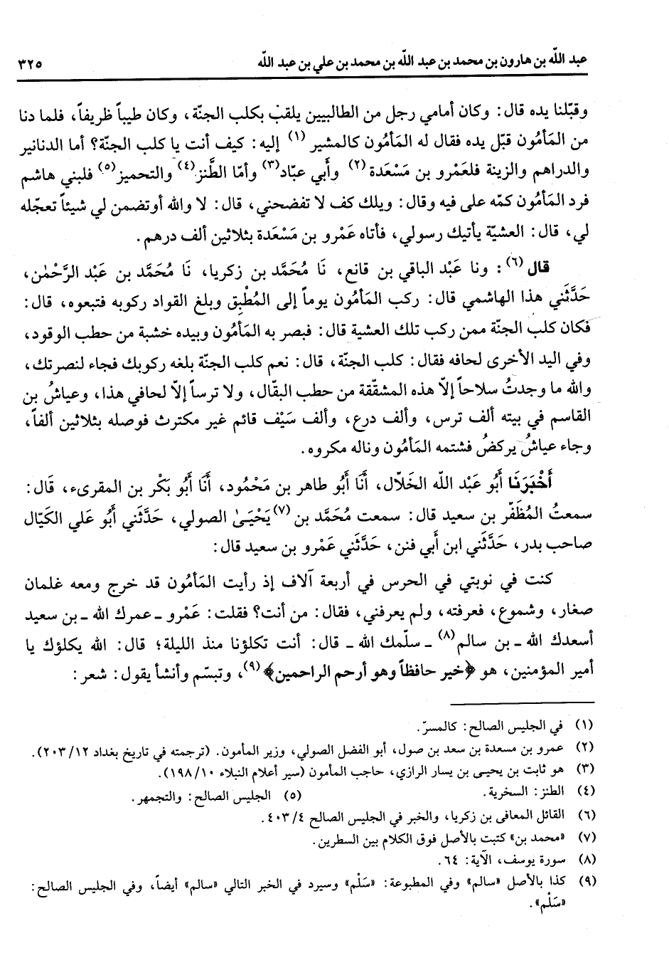 (9) كذا بالاصل " سالم " وفي المطبوعة: " سلم " وسيرد في الخبر التالي " سالم " أيضا وفي الجليس الصالح: " سلم "
