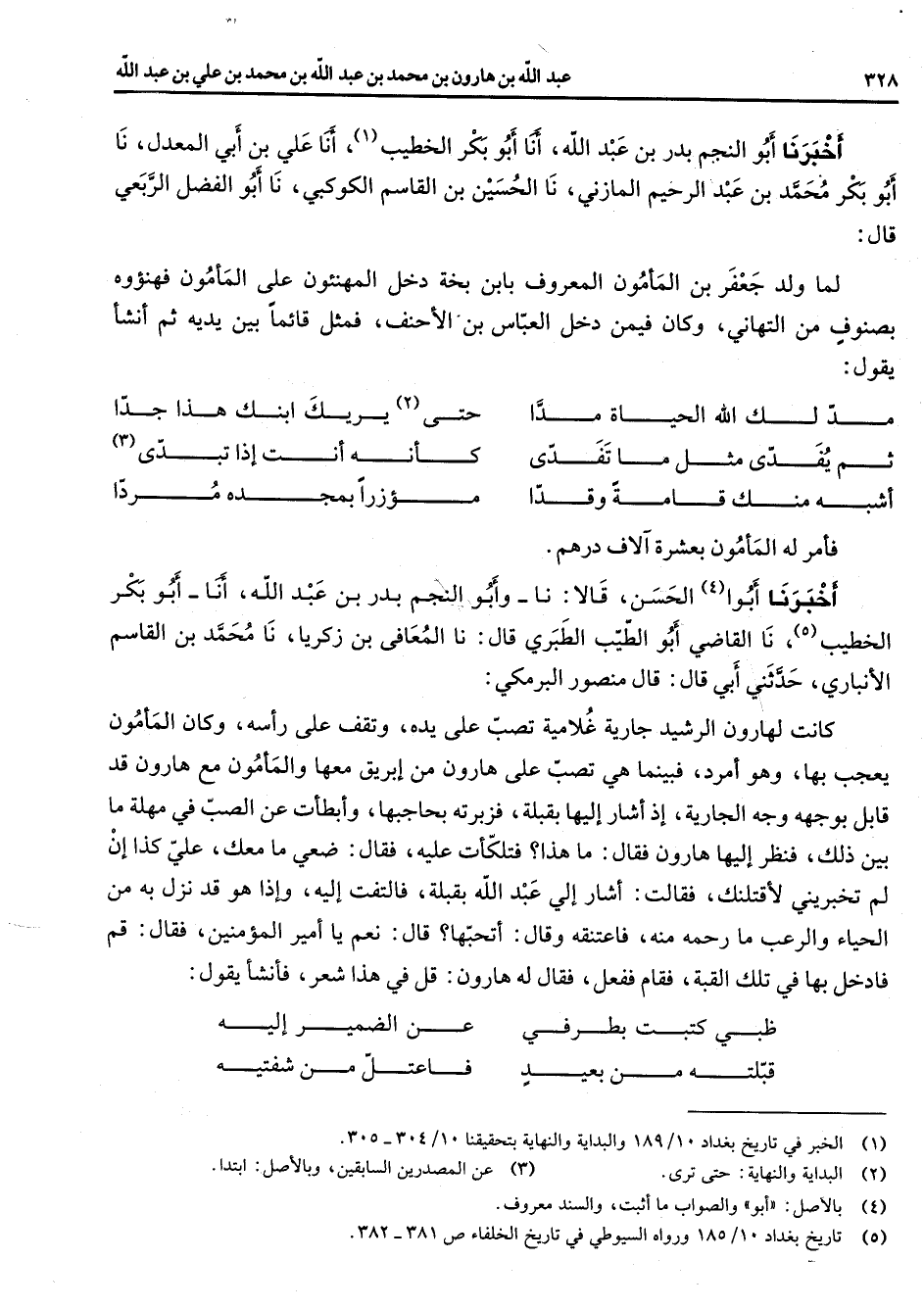 (5) تاريخ بغداد 10 / 185 ورواه السيوطي في تاريخ الخلفاء ص 381 - 382