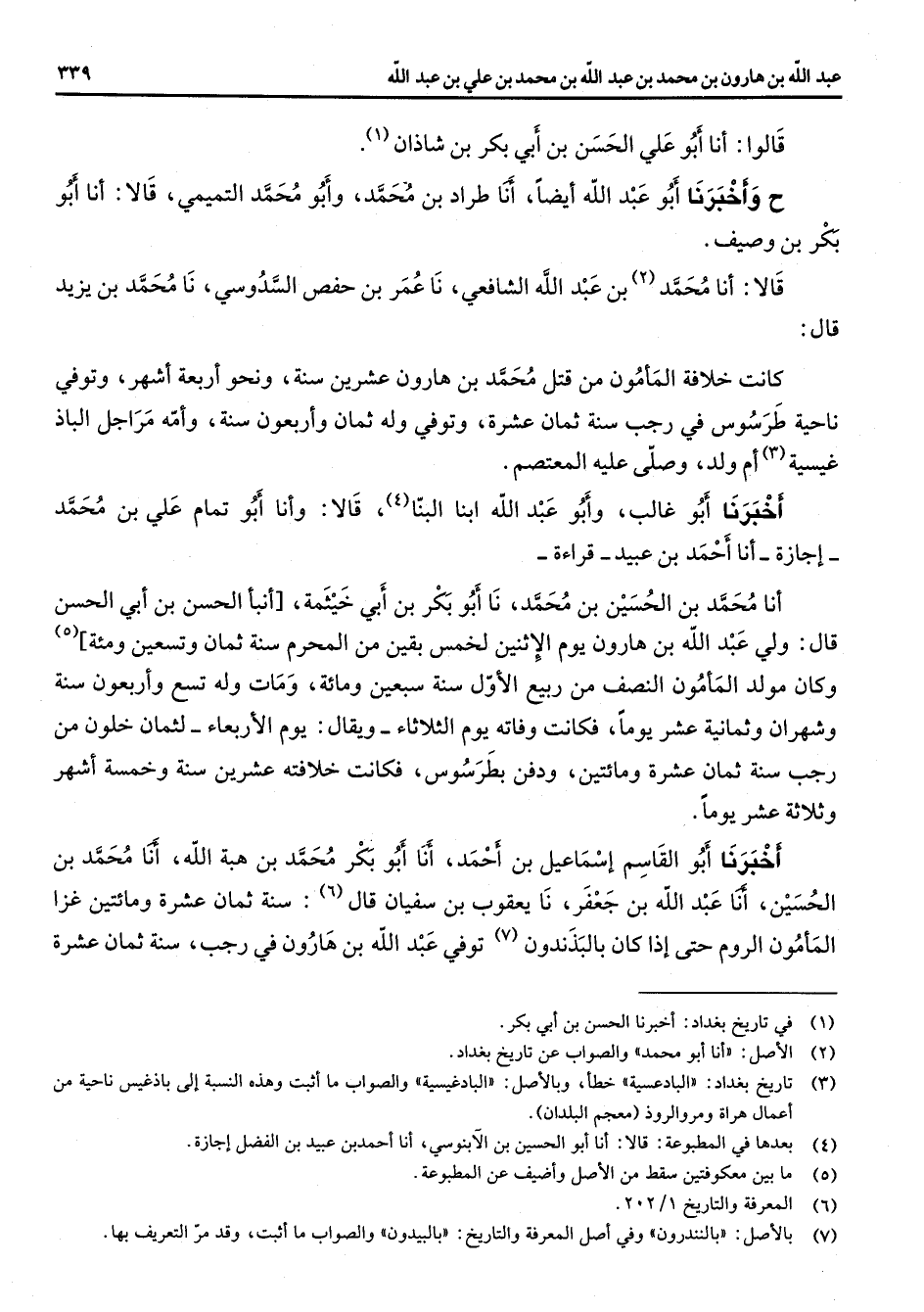 (1) في تاريخ بغداد: أخبرنا الحسن بن أبي بكر