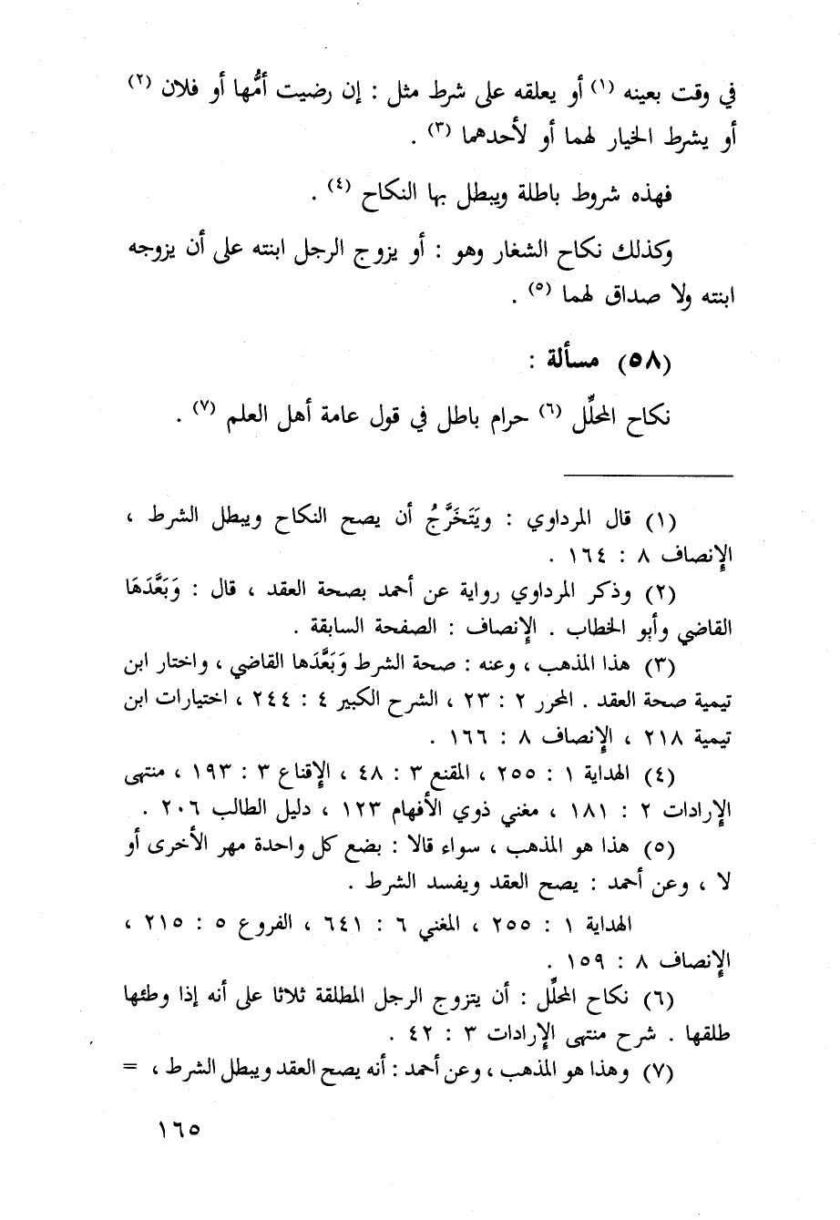 (6) نكاح المحلل: أن يتزوج الرجل المطلقة ثلاثا على أنه إذا وطئها طلقها. شرح منتهى الإرادات3: 42.