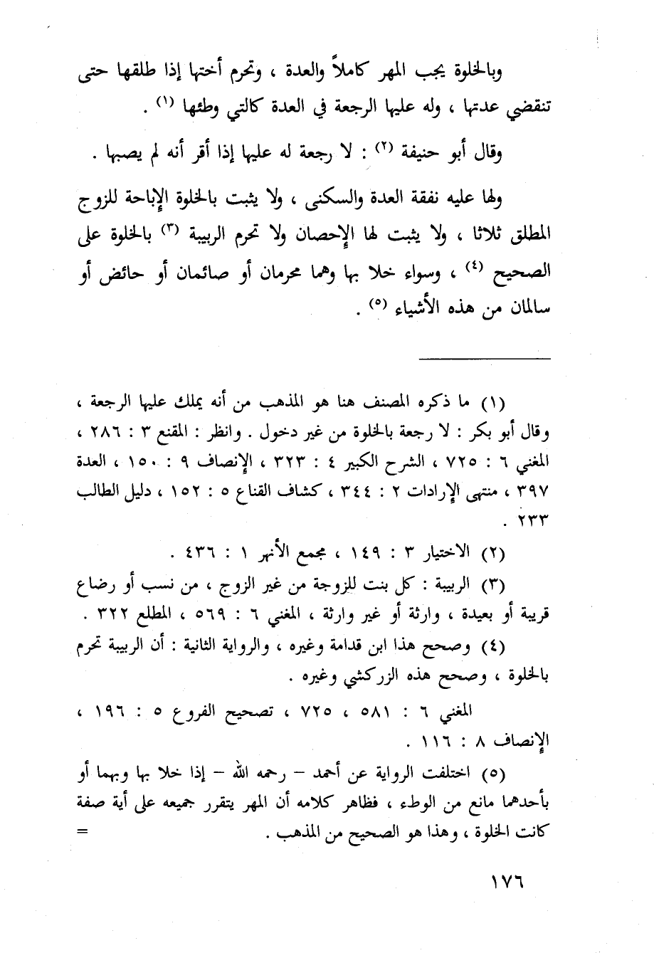 (1) ما ذكره المصنف هنا هو المذهب من أنه يملك عليها الرجعة، وقال أبو بكر: لا رجعة بالخلوة من غير دخول. وانظر: المقنع3: 286، المغني6: 725، الشرح الكبير4: 323، الإنصاف9: 150، العدة397، منتهى الإرادات2: 344، كشاف القناع5: 152، دليل الطالب233.