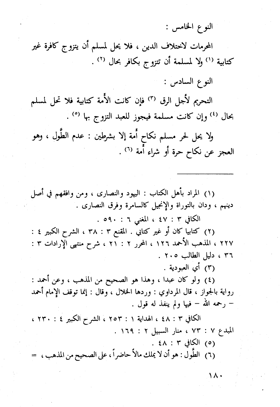 النوع السادس: التحريم لأجل الرق3، فإن كانت الأمة كتابية فلا تحل لمسلم بحال4، وإن كان مسلمة فيجوز للعبد التزوج بها5.