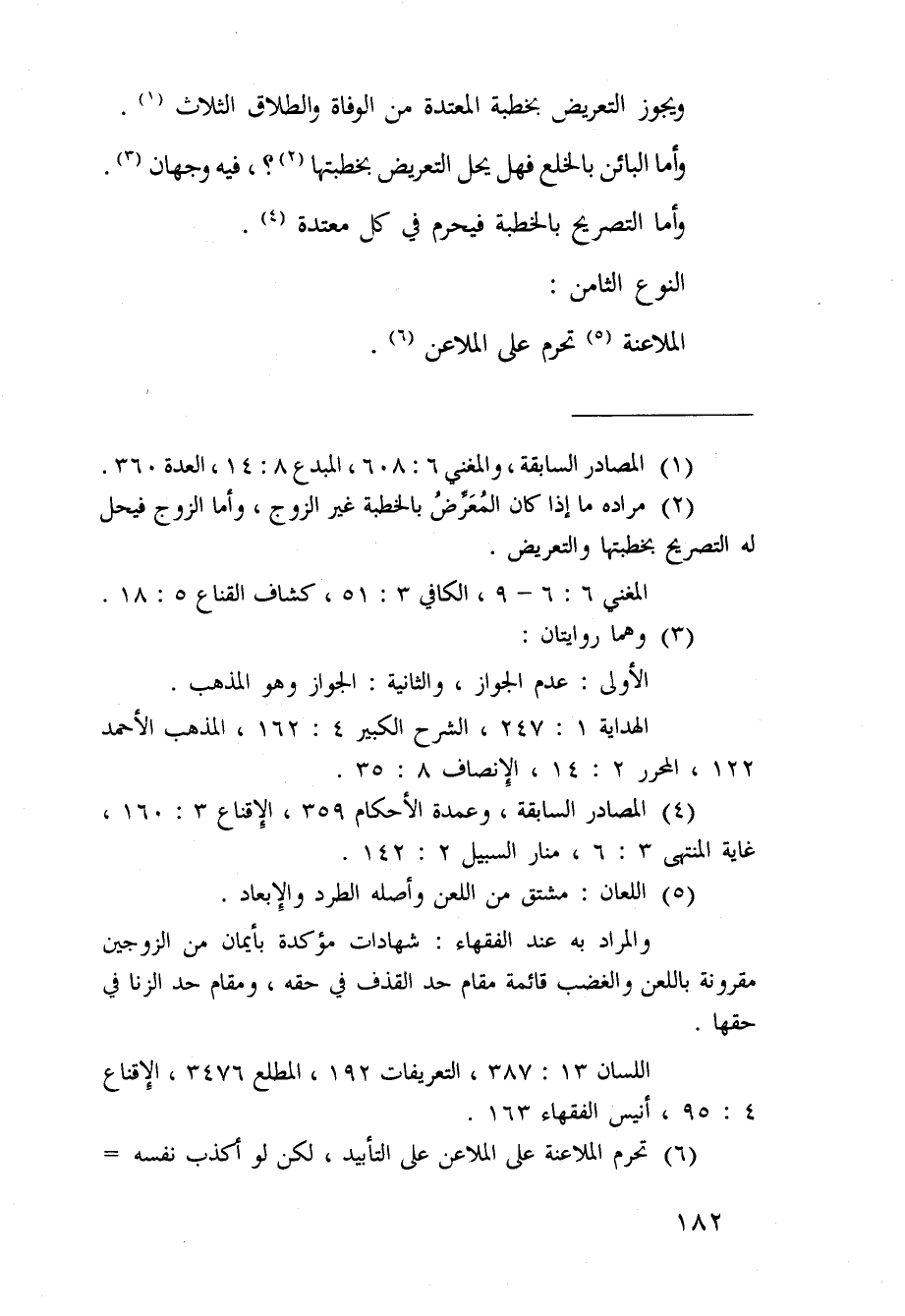 (2) مراده ما إذا كان المعرِّض بالخطبة غير الزوج، وأما الزوج فيحل له التصريح بخطبتها والتعريض.