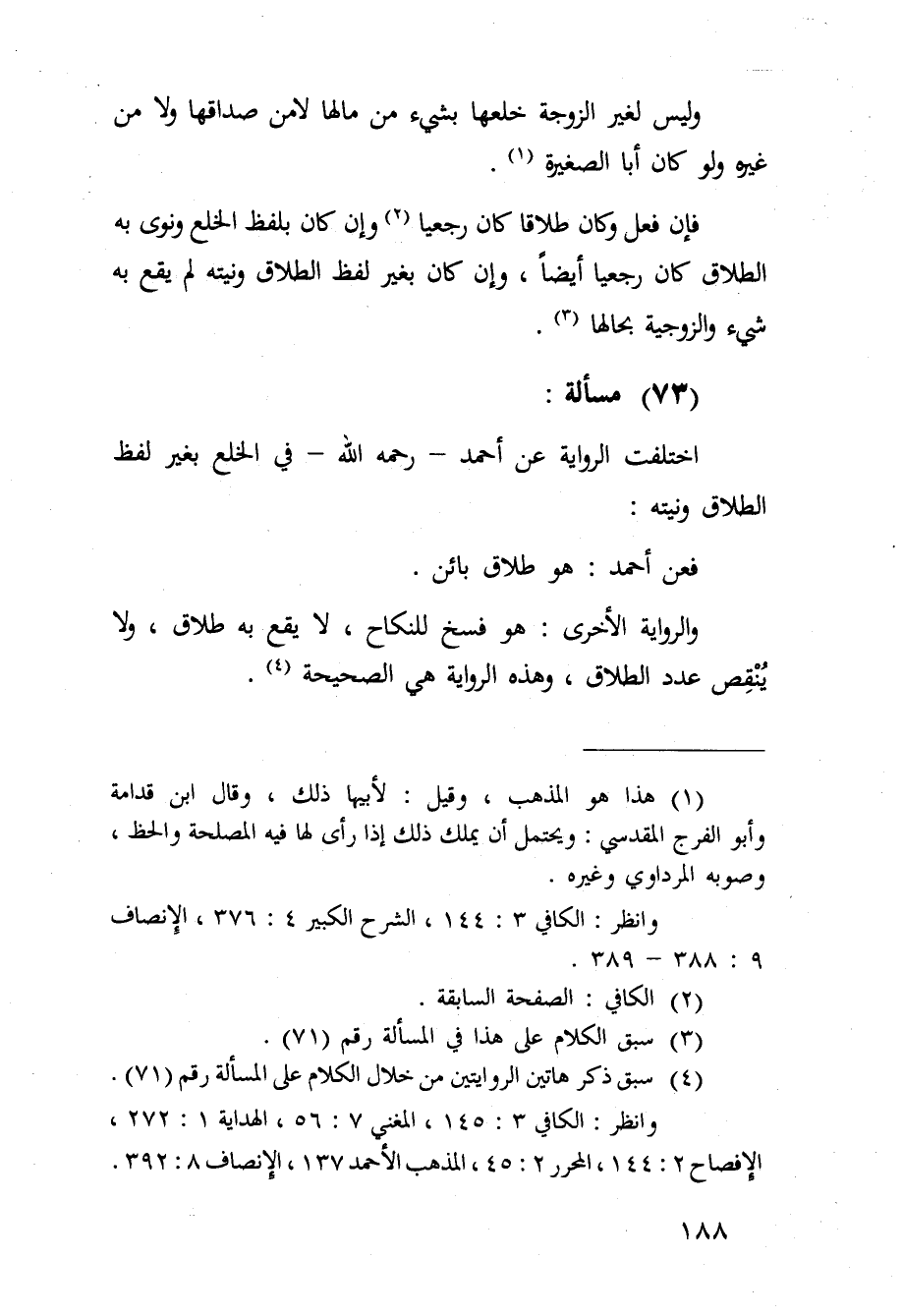 وانظر: الكافي3: 145، المغني7: 56، الهداية1: 272، الإفصاح2: 144، المحرر2: 45، المذهب الأحمد137، الإنصاف8: 392.
