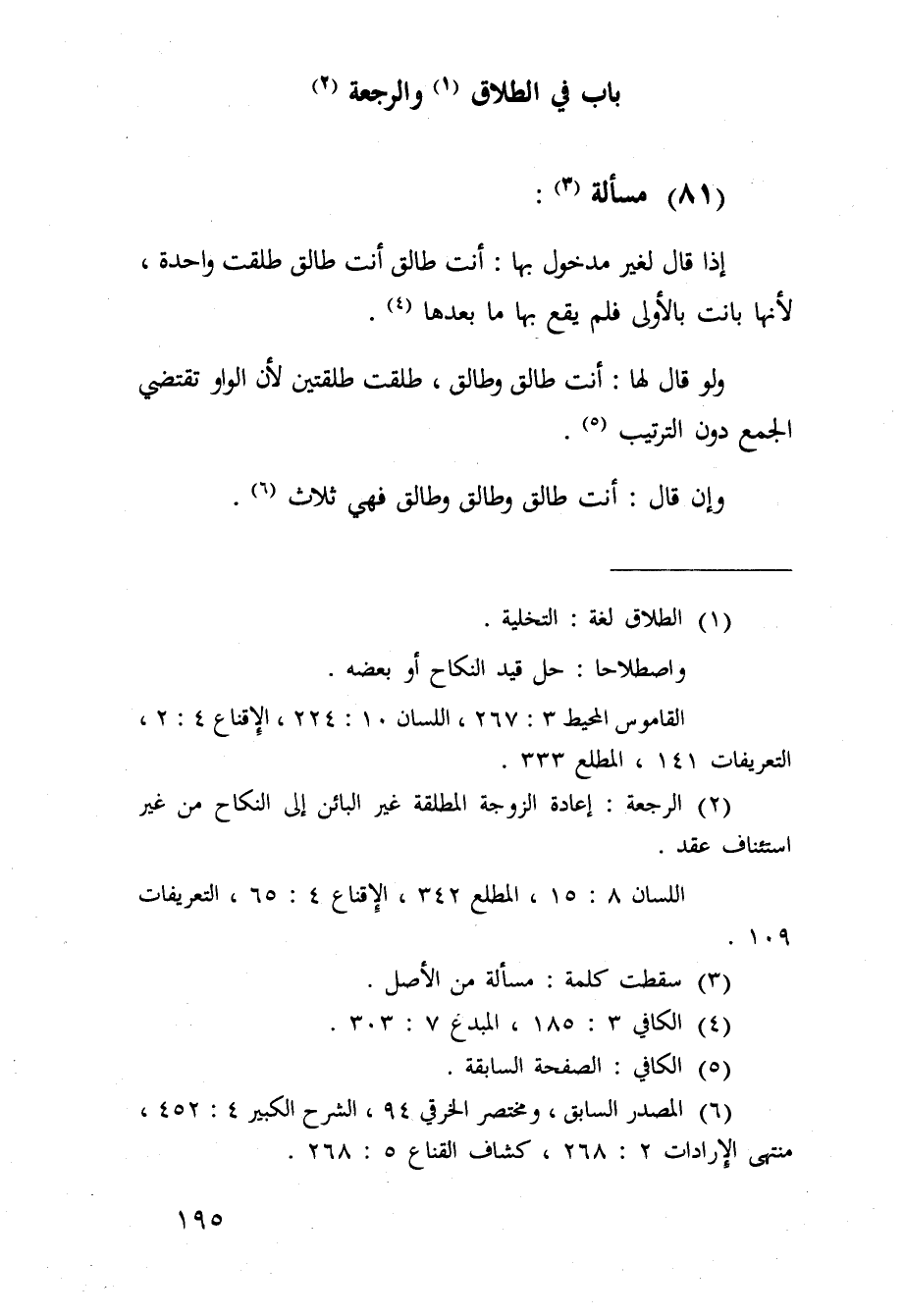 (6) المصدر السابق، ومختصر الخرقي94، الشرح الكبير4: 452، منتهى الإرادات2: 268، كشاف القناع5: 268.
