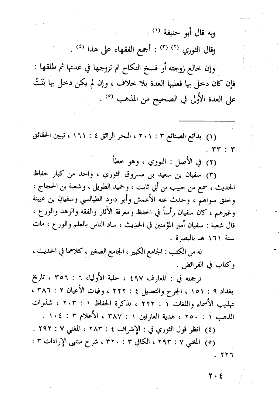 (1) بدائع الصنائع3: 201، البحر الرائق4: 161، تبيين الحقائق3: 33.
