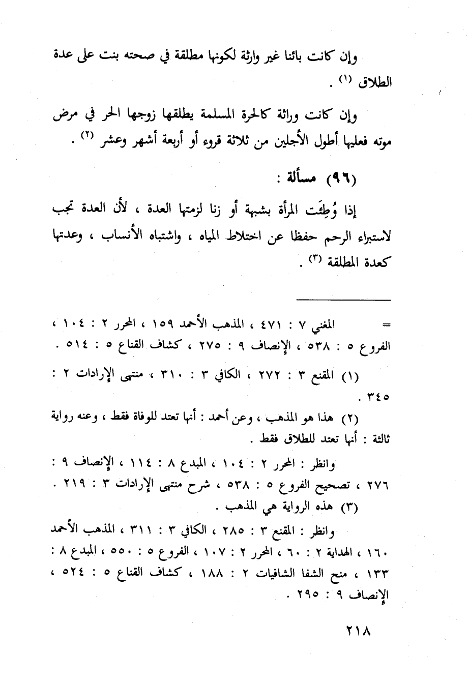 وانظر: المقنع3: 285، الكافي3: 311، المذهب الأحمد160، الهداية2: 60، المحرر2: 107، الفروع5: 550، المبدع8: 133، منح الشفا الشافيات2: 188، كشاف القناع5: 523، الإنصاف9: 295.