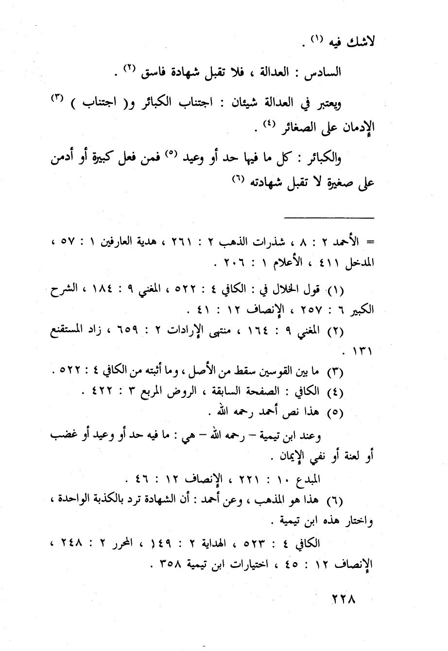 ويعتبر في العدالة شيئان: اجتناب الكبائر و (اجتناب) 3 الإدمان على الصغائر4.
