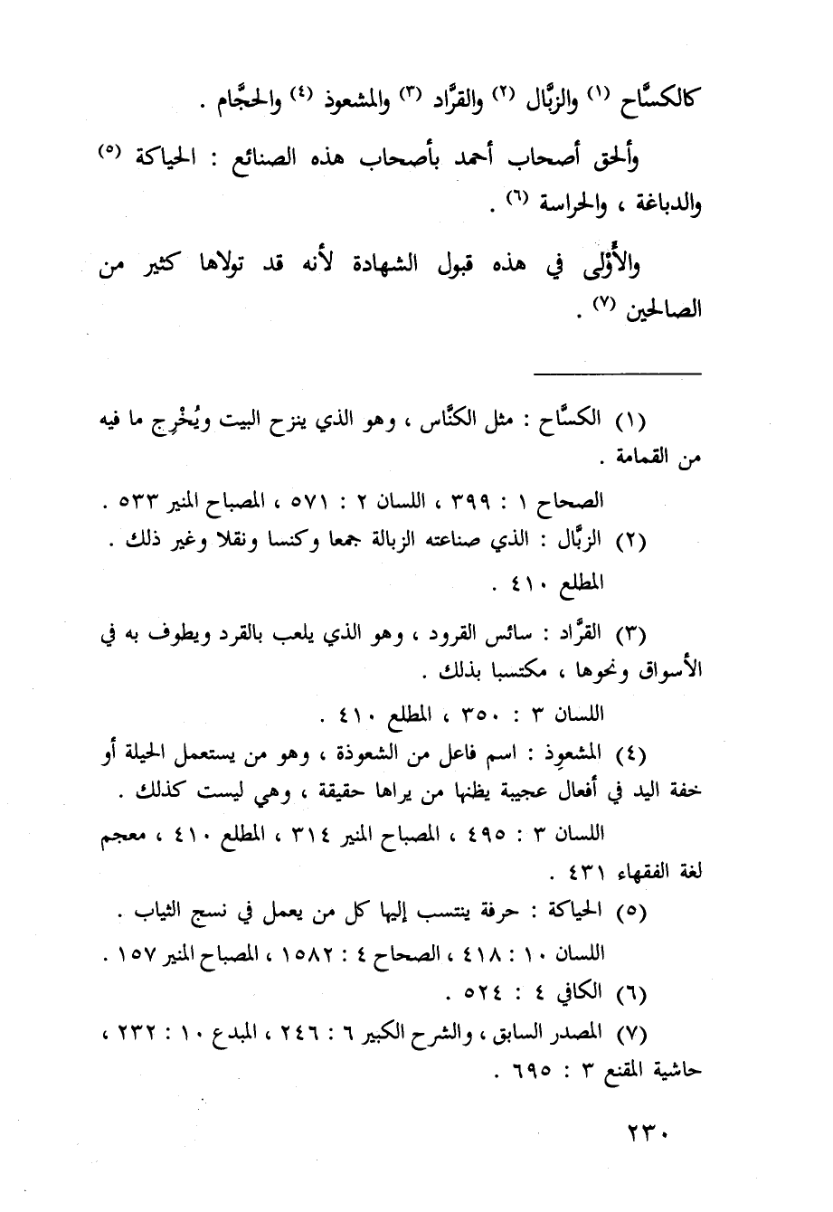 وألحق أصحاب أحمد بأصحاب هذه الصنائع: الحياكة5، والدباغة، والحراسة6.