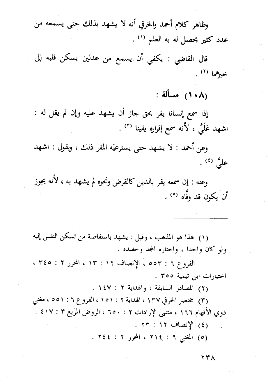 (1) هذا هو المذهب، وقيل: يشهد باستفاضة من تسكن النفس إليه ولو كان واحدا، واختاره المجد وحفيده.