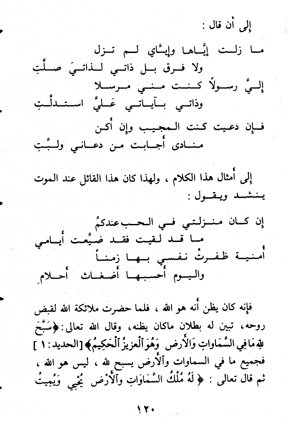 إلى أمثال هذا الكلام، ولهذا كان هذا القائل عند الموت ينشد ويقول: