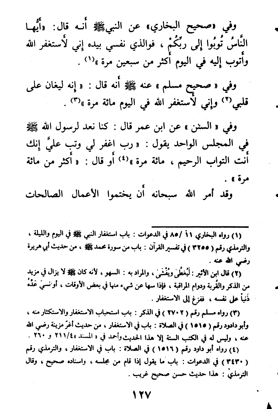 وفي صحيح البخاري عن النبي صلى الله عليه وسلم أنه قال: «أيها الناس توبوا إلى ربكم، فوالذي نفسي بيده إني لأستغفر الله وأتوب إليه في اليوم أكثر من سبعين مرة» .