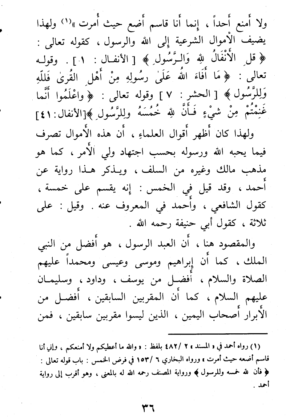 ولاأمنع أحدا، إنما أنا قاسم أضع حيث أمرت» ولهذا يضيف الله الأموال الشرعية إلى الله والرسول، كقوله تعالى: {قل الأنفال لله والرسول} وقوله تعالى: {ما أفاء الله على رسوله من أهل القرى فلله وللرسول} وقوله تعالى: {واعلموا أنما غنمتم من شيء فأن لله خمسه وللرسول} .