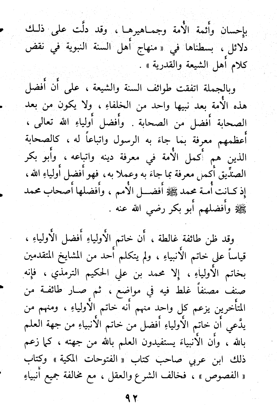 بإحسان وأئمة الأمة وجماهيرها، وقد دلت على ذلك دلائل، بسطناها في منهاج أهل السنة النبوية في نقض كلام أهل الشيعة والقدرية.