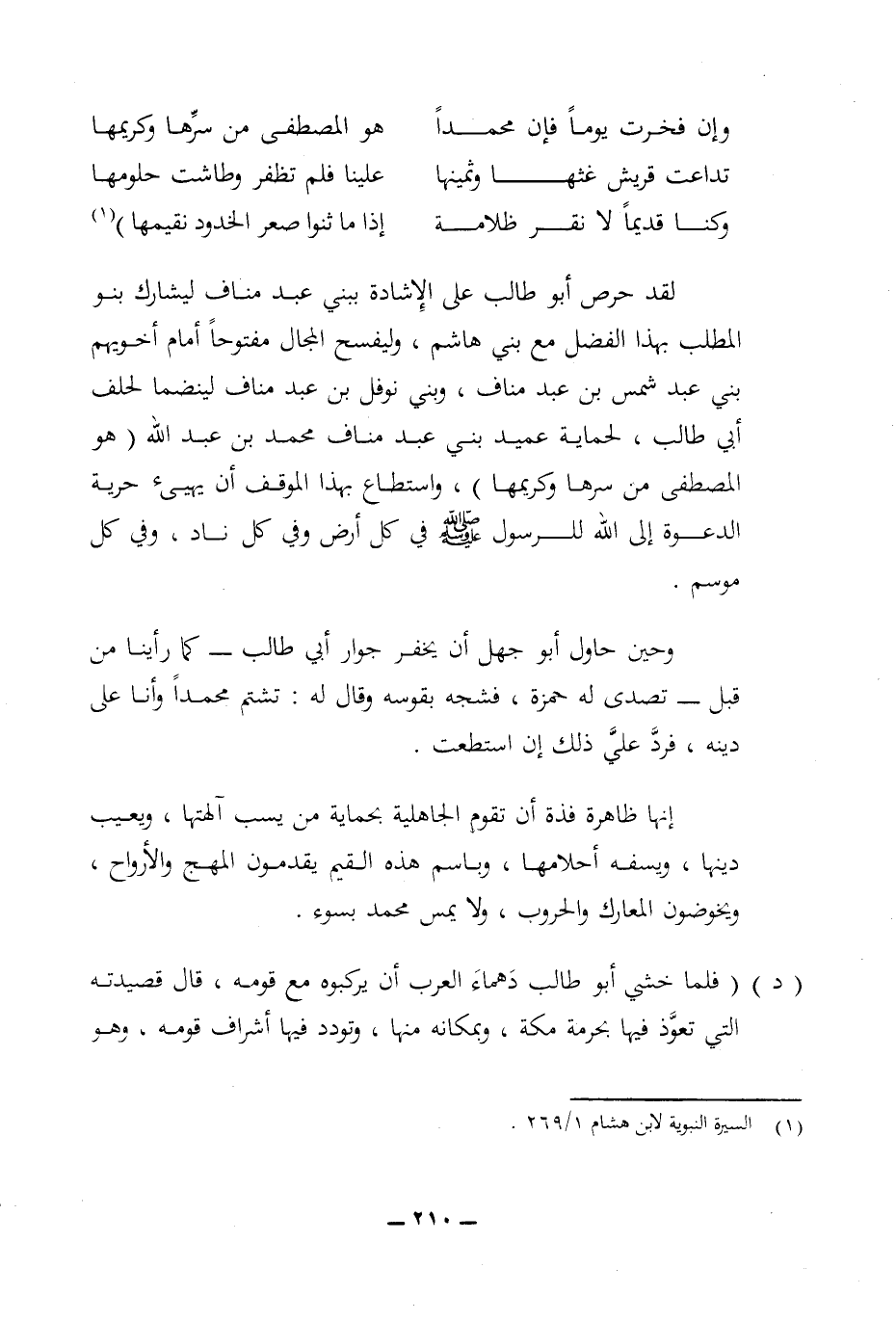 (د) (فلما خشي أبو طالب دهماء العرب أن يركبوه مع قومه، قال قصيدته التي تعوذ فيها بحرمة مكة، وبمكانه منها، وتودد فيها أشراف قومه، وهو