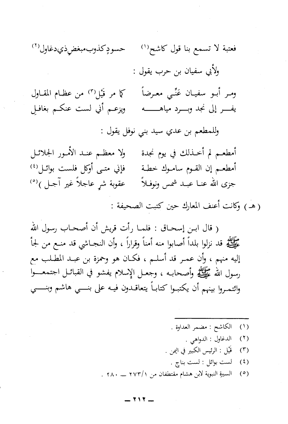 (¬5) السيرة النبوية لابن هشام مقتطفان من 273/ 1 - 280.