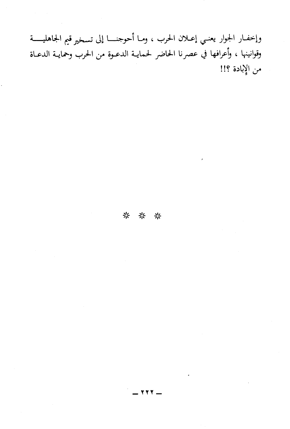 وإخفار الجوار يعني إعلان الحرب، وما أحوجنا إلى تسخير قيم الجاهلية وقوانينها، وأعرافها في عصرنا الحاضر لحماية الدعوة من الحرب وحماية الدعاة من الإبادة؟!!