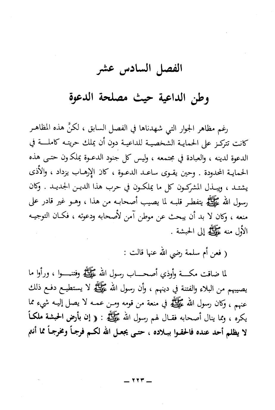رغم مظاهر الجوار التي شهدناها في الفصل السابق، لكن هذه المظاهر كانت تتركز على الحماية الشخصية للداعية دون أن يملك حريته كاملة في الدعوة لدينه، والعبادة في مجتمعه، وليس كل جنود الدعوة يملكون حتى هذه الحماية المحدودة. وحين يقوى ساعد الدعوة، كان الإرهاب يزداد، والأذى يشتد، ويبذل المشركون كل ما يملكون في حرب هذا الدين الجديد. وكان رسول الله (ص) يتفطر قلبه لما يصيب أصحابه من هذا، وهو غير قادر على منعه، وكان لا بد أن يبحث عن موطن آمن لأصحابه ودعوته، فكان التوجيه الأول منه (ص) إلى الحبشة.