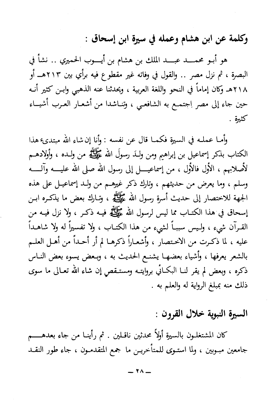 وكلمة عن ابن هشام وعمله في سيرة ابن إسحاق: